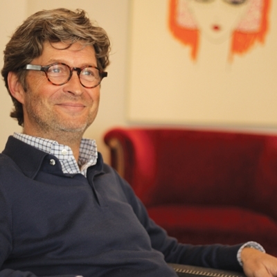 Le parti pris de cette réalisation, était de moderniser cette vieille demeure, tout en gardant les éléments anciens, comme par exemple le tablier de la cheminée 18ème, avec son trumeau. J’ai crée un grand salon de réception, et dans l’ancien atelier un salon télé bibliothèque plus intime. La pièce s’y prêtait par la configuration en L, avec une hauteur sous plafond de 4m30, ce qui m’a permis de jouer sur les volumes, et surtout d’intégrer dans les plafonds l’ensemble des spots et les enceintes. Une bibliothèque a été installée sous et sur la mezzanine, et peinte sur les deux niveaux, en y intégrant une couleur différente sur une partie des étagères, pour obtenir une verticalité tout en ayant une continuité visuelle du sol au plafond. Un garde-corps en verre a été posé, ainsi qu’un escalier en colimaçon très brut en métal, façon usine. Pour rompre avec cet élément très contemporain, le mur opposé fût habillé de placards qui ont été recouverts de palissandre, ainsi que de niches, peintes en rouge pour donner de la profondeur. J’ai choisi pour le sol, un parquet massif en mutenyé, avec leds intégrés au niveau de la marche, et un changement de sens des lames de parquet. Pour l’ensemble, j’ai utilisé des peintures Farrow and Ball : du gris pour les murs, du chocolat pour le plafond du petit salon, du tête de nègre et du rouge pour la bibliothèque. Pour les rideaux j’ai choisi un lin gris taupé de chez D.Kieffer, pour le mobilier, des sièges art déco, une paire de fauteuils Le Corbusier et des canapés Verzzeloni en velours taupe.