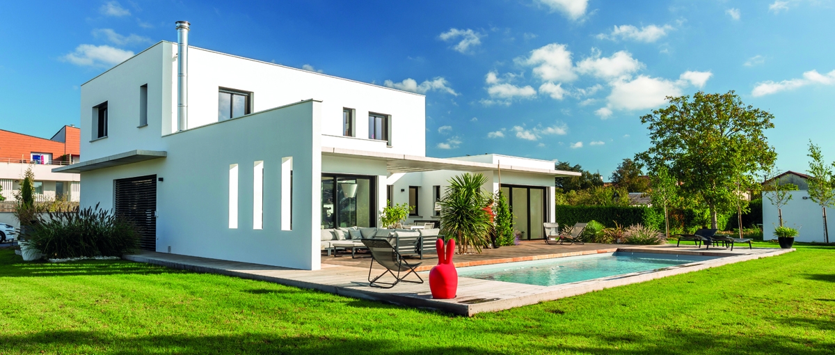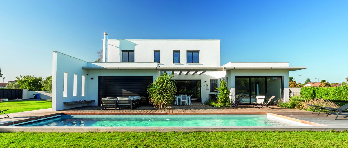 La maison s’installe sur un terrain plat et allongé. Les espaces sont tournés vers l’extérieur sans pour autant perdre en intimité. Les orientations Est, Sud et Ouest sont toutes recherchées.