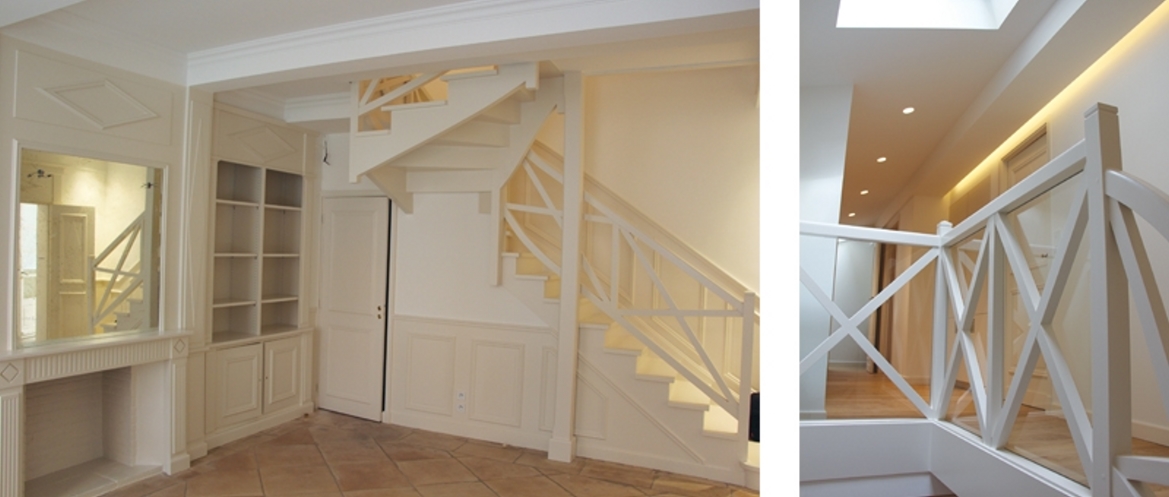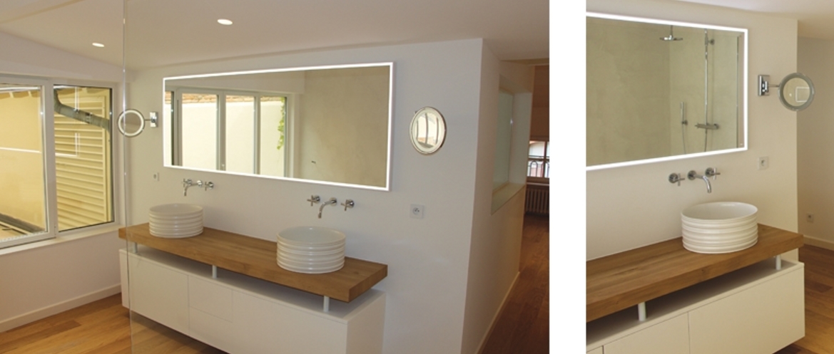 Dans le coeur historique de Toulouse, cette chartreuse en fond de cour pavée a bénéficié d’une rénovation globale pour répondre aux attentes des nouveaux propriétaires. La volonté principale a été d’ouvrir les espaces et d’apporter la lumière naturelle dans chaque volume, initialement peu ouvert et trop sombre. Le choix de matériaux de teinte claire et un dégradé de blanc en peinture allège et souligne les volumes. Les espaces ont été décloisonnés. L’ensemble des nouveaux placards et mobiliers se fond dans les murs. Les salles de bains se veulent épurées avec des grands bacs à douche à l’italienne, des bancs en béton ciré et des délimitations simples avec de grandes parois vitrées. Un traitement soigné a été réalisé sur la lumière et sur le chauffage, entièrement dissimulé dans les placards réalisés sur mesures. Ce réaménagement agrandi et allège cette belle maison de charme, en lui redonnant tout son caractère et en la faisant correspondre au mieux avec ses nouveaux occupants.