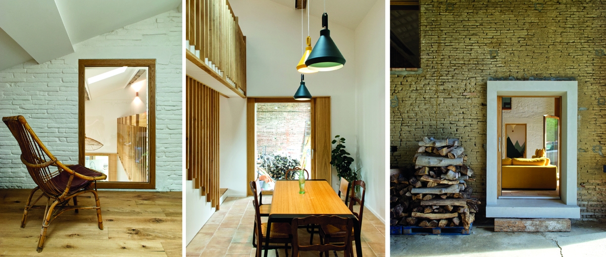 Initialement très introverties, la maison et la grange attenante étaient séparées par un mur de refend aveugle. Un des principaux enjeux de ce projet a été d’amplifier la relation entre l’intérieur et l’extérieur, d’ouvrir la maison sur son jardin et de créer des interconnexions avec la grange.