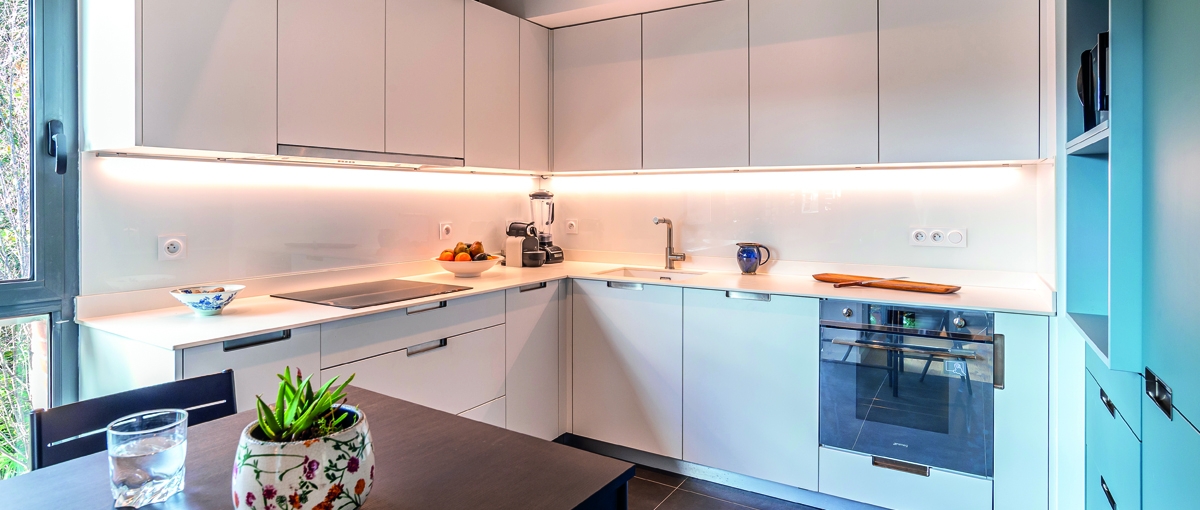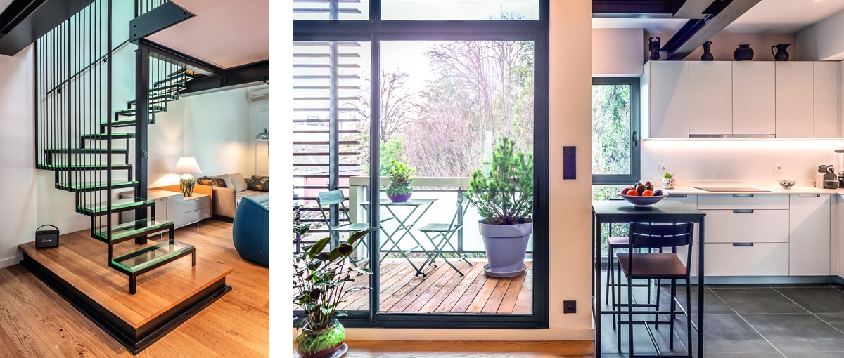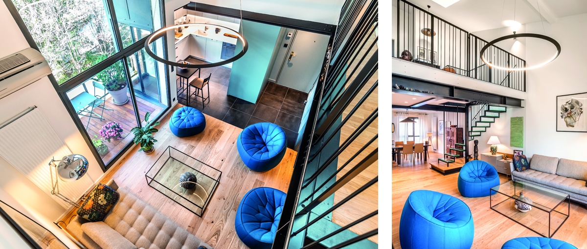 Ce duplex a été remanié afin d’optimiser les surfaces, ouvrir les perspectives sur la végétation, dégager les vues et apporter de la lumière naturelle avec des puits de jour.