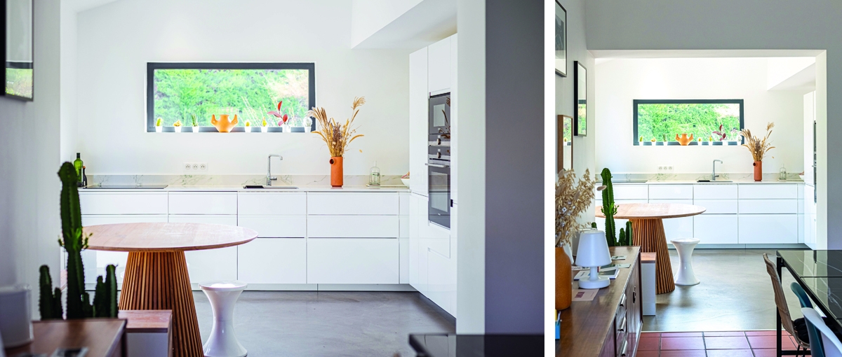 Répondre aux attentes et aux besoins des nouveaux propriétaires avec des espaces de vie plus larges, la création d’une extension dédiée à la cuisine, ainsi que le changement des codes couleurs de l’existant pour apporter à la maison le dynamisme de ses occupants étaient l’enjeu.
