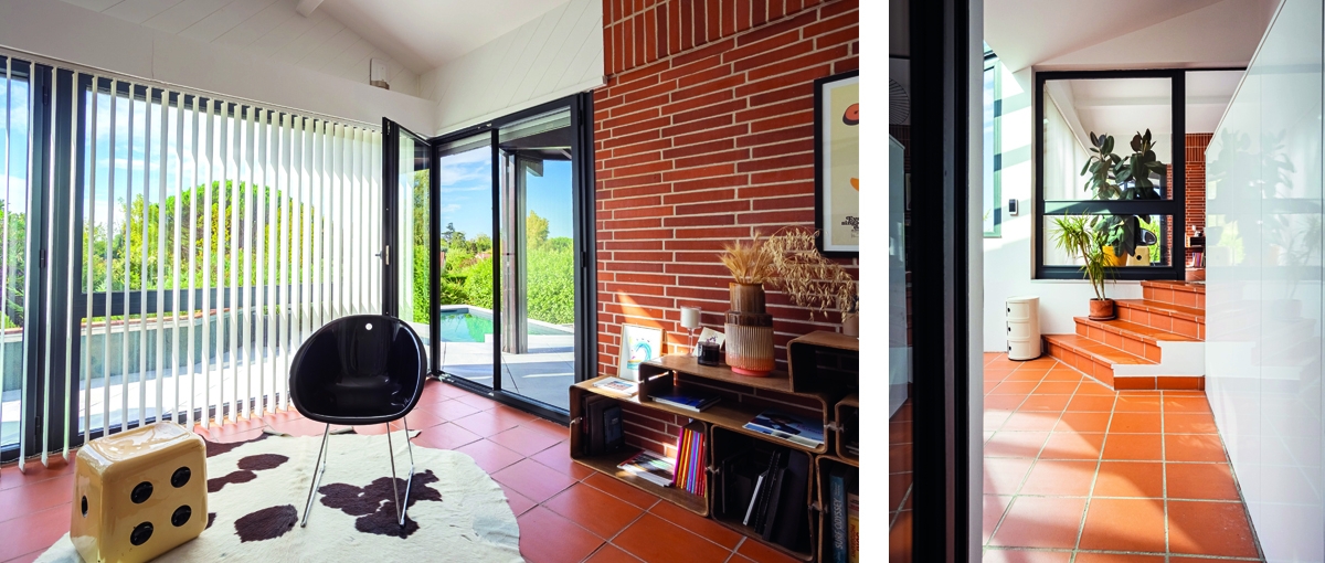 Donner un coup de modernité à une maison bioclimatique conçue par M. Colzani tout en en gardant l’essence fût la gageure de ce projet : la maison a une identité forte, marquée d’une esthétique caractéristique des années 80 et d’un usage important de la terre cuite.