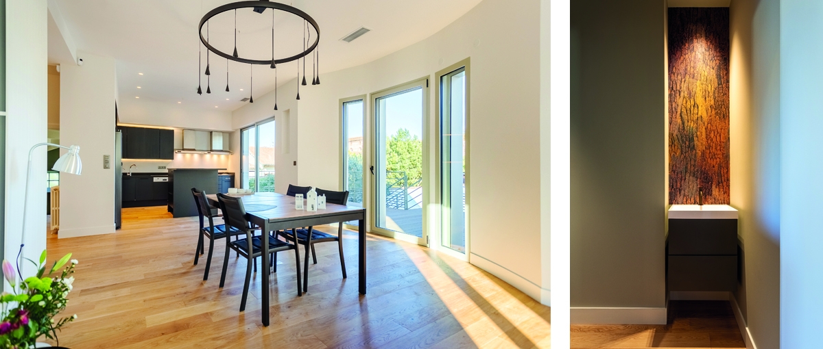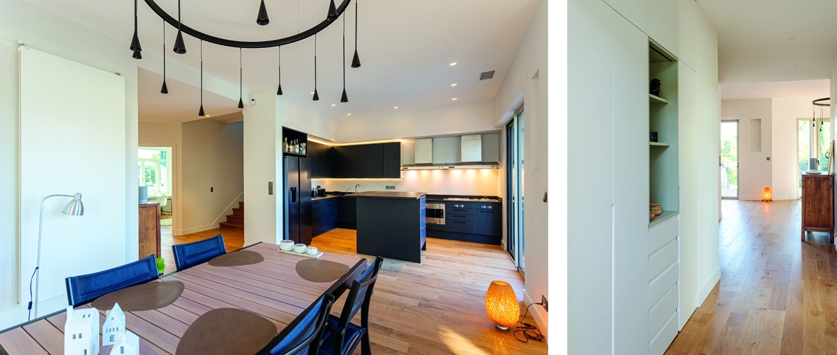 L'idée du projet était de complètement restructurer l'organisation des différents plateaux, d'orienter et d'ouvrir les pièces séjour, salle à manger, cuisine vers le jardin arboré avec sa piscine.