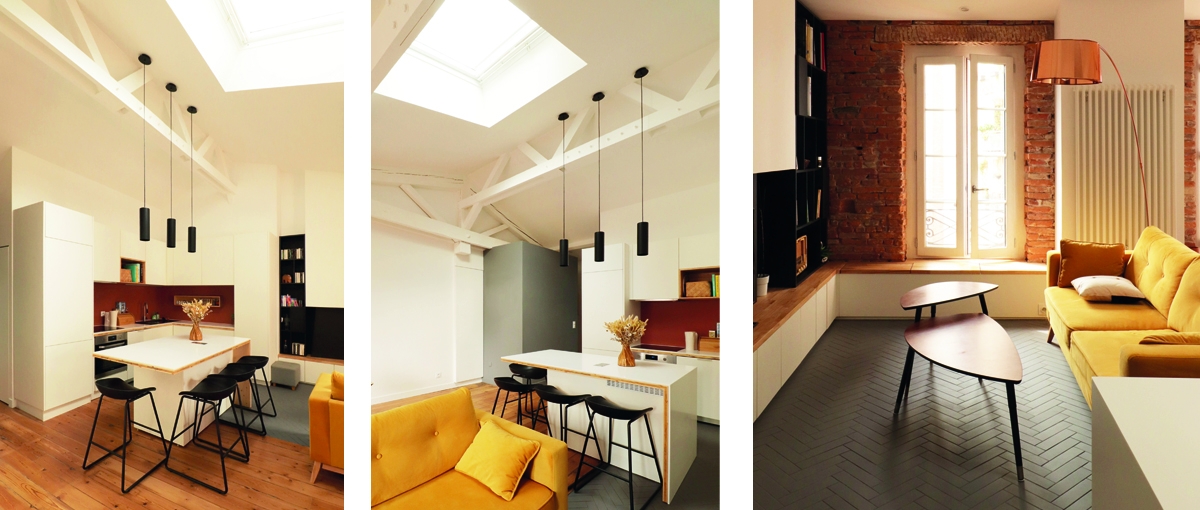 Situé dans le centre historique de Toulouse, cet appartement de 75 m2, sous les toits, a bénéficié d’une réhabilitation complète.