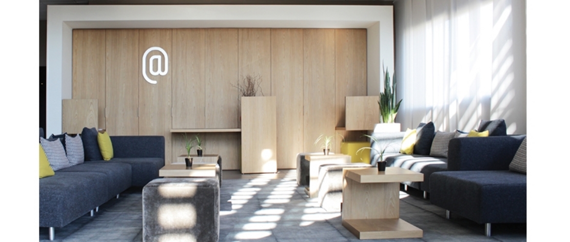 Nous tentons sur chaque projet de révélerréagir avec un contexte et qualifier les espaces en racontant une histoire : matières séquences filtres lumières... ces photos montrent la rénovation des parties communes (publics) d’un hôtel situé à proximité de l’aéroport de Toulouse. Face à la complexité induite par l’architecture et la continuité des espaces imposée par la charte hôtelière ; nous avons proposé de créer 4 séquences spatiales capables de matérialiser des fonctions distinctes mais communicantes : atrium, accueil, bar, salle de restaurant. Ces intentions se matérialisent en fonction des séquences par des volumes détachés de la structure du bâtiment, des sols de nature différentes, des couleurs (camaïeux de bleus) et teintes (bois : orme) continues, des jeux de parois verticales structurant ou libérant les espaces et un jeu de lumière accompagnant et renforçant la lumière naturelle des différentes séquences.