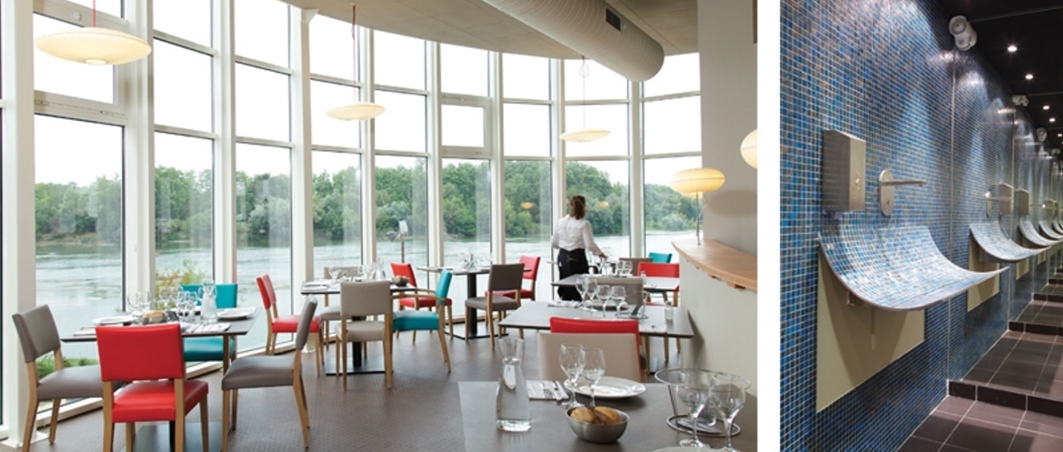 Projet réalisé en association avec Fabienne Larcade, architecte à Marciac. Le Maître de l’Ouvrage souhaite transformer une discothèque - véritable institution dans les années 50 - en restaurant de fruits de mer et faire revivre ainsi « Le Clapotis ». En effet, le bâtiment localisé chemin des Etroits, bénéficie d’un emplacement unique face à la Garonne. Le travail de l’architecte consiste ici à redonner vie au bâtiment d’origine, qui a subi des « bricolages successifs » pendant toutes ces années jusqu’à devenir une discothèque à 2 niveaux pouvant accueillir 7oo personnes. Il faudra donc rénover les façades blanches et arrondies, et créer selon les courbes de l’ancienne terrasse un mur en verre pour dominer le site et accueillir 15o convives. En outre, conformément aux règles du « Plan de Prévention aux Risques Inondation », un « niveau refuge » de 110 m2, clos et couvert, devra être construit : surélévation en structure bois, cintrée, enduite de blanc qui devra se fondre avec l’ensemble du bâtiment. A l’intérieur, la cuisine est ouverte sur la salle de restaurant avec en transition le buffet et une large vinothèque. Un jeu d’estrades cintrées habillées de dalles souples (reproduisant l’effet métallique rouillé et larmé) fait écho au mur rideau en vague : chacun peut bénéficier de la vue tout en dégustant…
