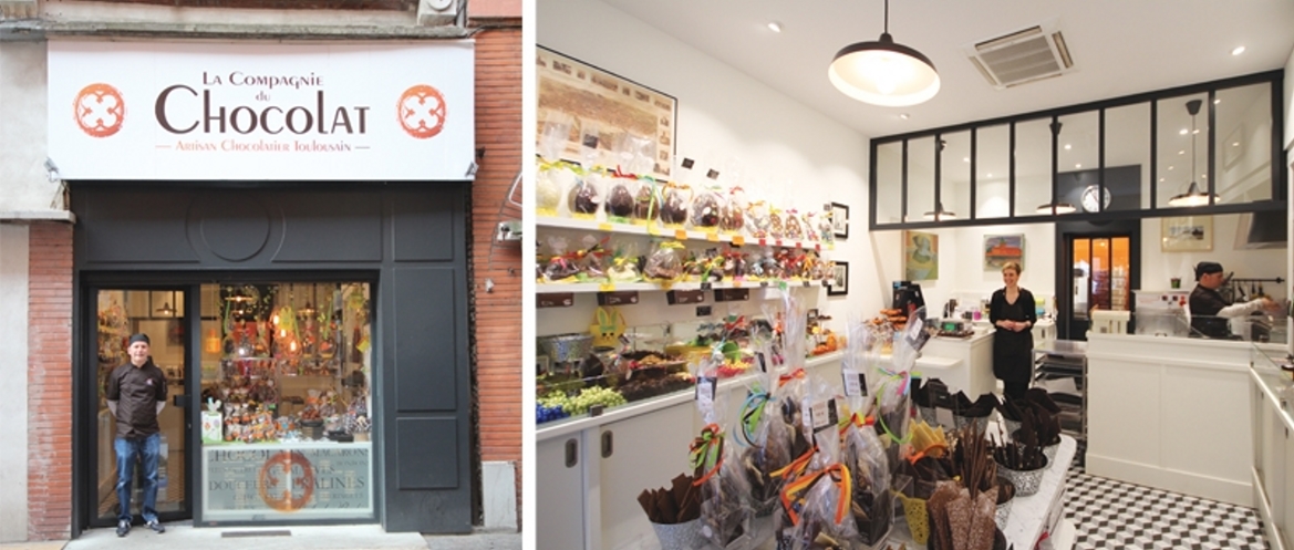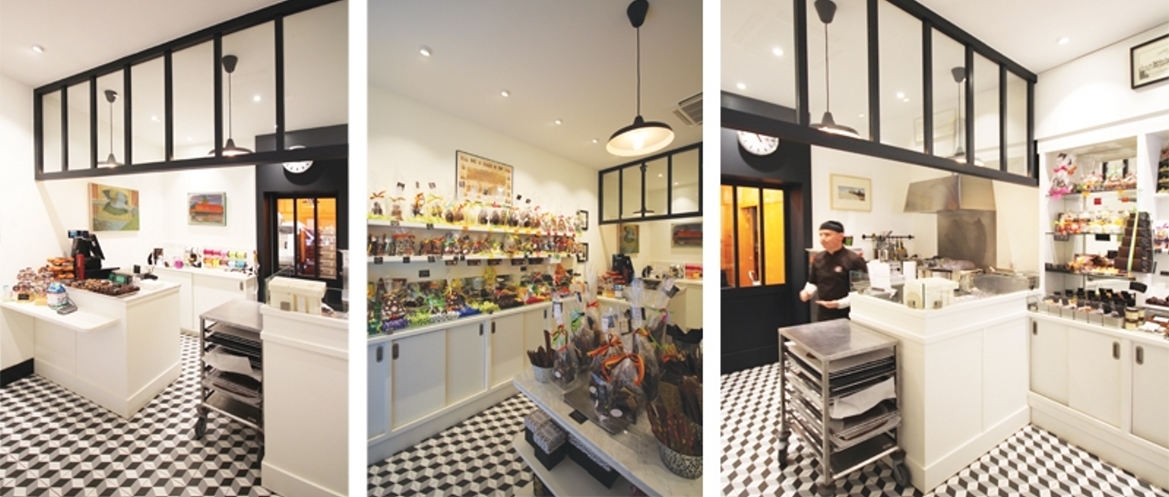 La compagnie du chocolat nous a confi é la rénovation d’une de ses boutiques. Modelage des volumes, mise en conformité pmr, réfection des sols et murs, relooking du mobilier, éclairage et couleurs pour cet atelier de fabrication traditionnelle .