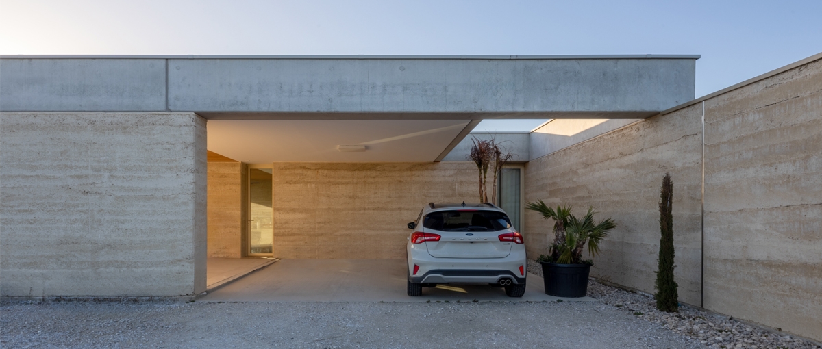 Par écho aux pratiques constructives lauragaises, et aussi dans une initiative d’économie circulaire, les murs ont été érigés en béton de terre stabilisée, non isolé et non armé, mis en oeuvre via la technique traditionnelle du pisé.