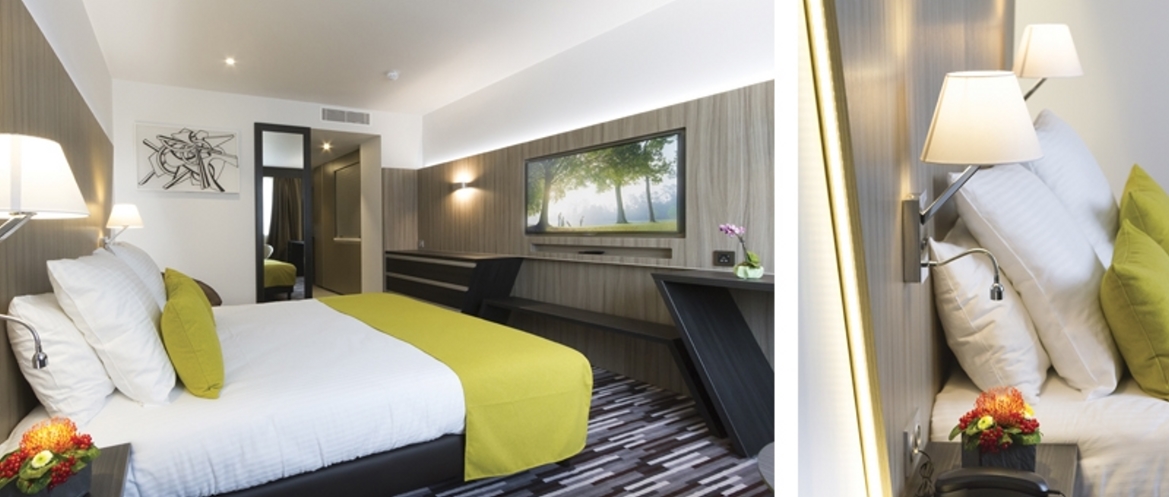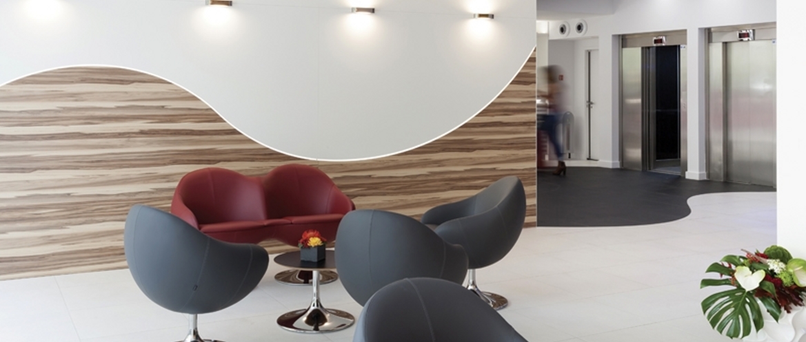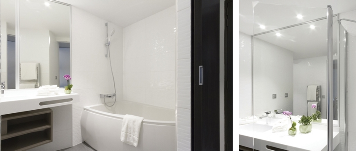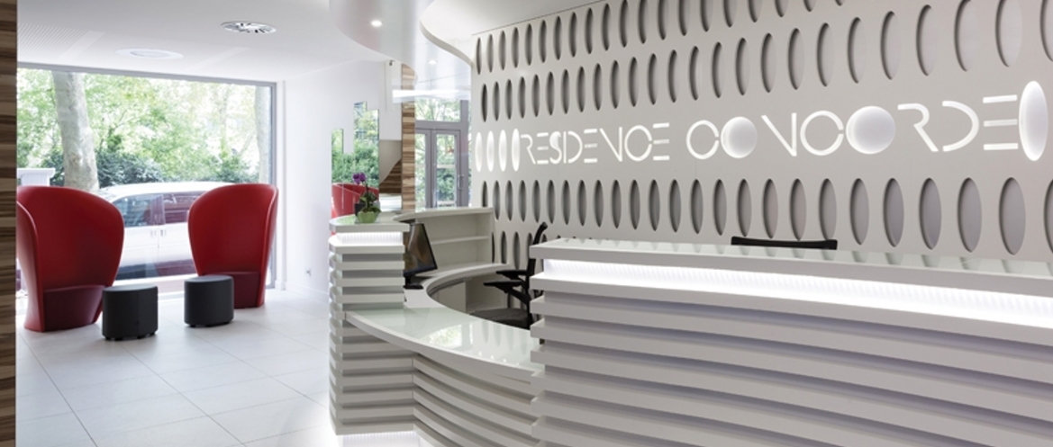 Faire renaître « Le Concorde », bâtiment emblématique de la fin des années 60, tel a été le challenge que nous a confié le promoteur Toulousain, DEROMEDI SA . Cet établissement, oublié depuis de nombreuses années, nous avons souhaité lui redonner son identité sans perdre de vue ses origines. L’emplacement unique au bord du canal du midi, cet endroit boisé entre nature et ville, a permis de créer un lien entre ces deux mondes ; un sas minéral et technologique donnant accès à un espace d’accueil, lumineux, aux notes de bois, on y retrouve des murs de végétaux, des camaïeux de couleurs allant du blanc au gris, rappelant ainsi l’univers urbain, les différents espaces se fondent entre eux. Les 101 appartements qui composent la résidence ont été repensés entièrement, en créant un nouvel univers inspiré de formes et de rythmes géométriques en référence à Ettore Sottsass. Le jeu des formes « trapéziennes » des éléments et du mobilier dessiné pour l’hôtel Concorde, les moquettes réalisées pour l’occasion, ainsi que les oeuvres inédites de l’artiste JP Magnoac font de ces appartements, des exclusivités. L’hôtel Concorde avait un potentiel et nous l’avons exploité au maximum, l’objectif était de lui redonné vie et c’est ce qu’il semble être arrivé …