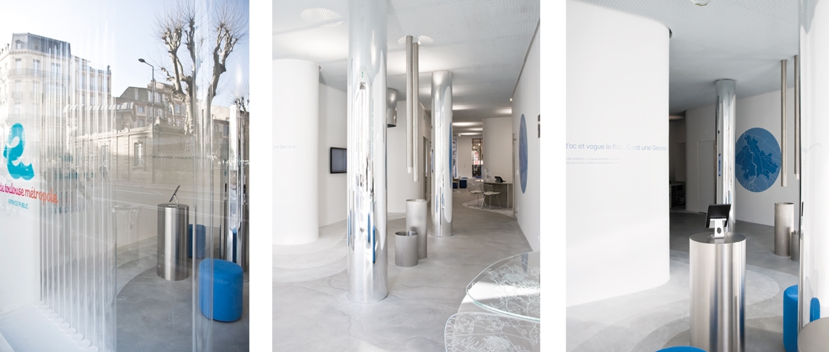 La maison de l'eau est situé au coeur de la métropole, dans le centre historique de Toulouse. Il s’agit d’un projet de reconversion d’une ancienne boutique en espace d’utilité publique : l’eau de Toulouse Métropole. Il se compose d'un espace d’accueil, fonctionnel, immersif, tout en courbes offrant un espace pédagogique. Le projet tente de participer à l'image du développement contemporain et culturel du territoire.