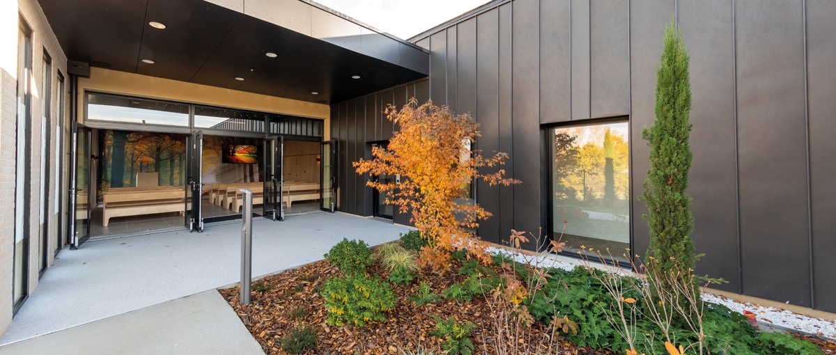 Afin d'apporter une note de gaieté dans les moments de tristesse et de recueillement, nous avons voulu dessiner un lieu accueillant accompagné de cheminements extérieurs paysagés.