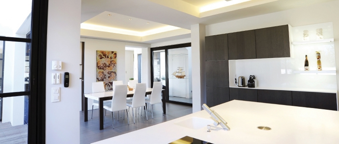 Pour cette villa de la région toulousaine, la réalisation des travaux a été effectuée par Bernard Catugier et Jean Baptiste Legris sur une durée de 15 mois. C’est sur un terrain quasiment plat que cette habitation de 300 m2 a vu le jour, avec un environnement exceptionnel, à l’orée d’un bois. Afin de répondre à la volonté des habitants qui souhaitaient une fluidité entre les différents espaces d’accès : garage, office, buanderie, cuisine et salle de sport, Jean-Baptiste Legris a pris en compte le mode de vie des parents et des enfants pour proposer un agencement optimal.