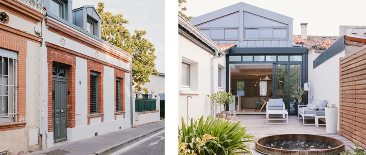 Le travail s’est alors orienté sur l’implantation de plusieurs lucarnes métalliques en toiture : deux petites sur rue et une grande sur jardin.