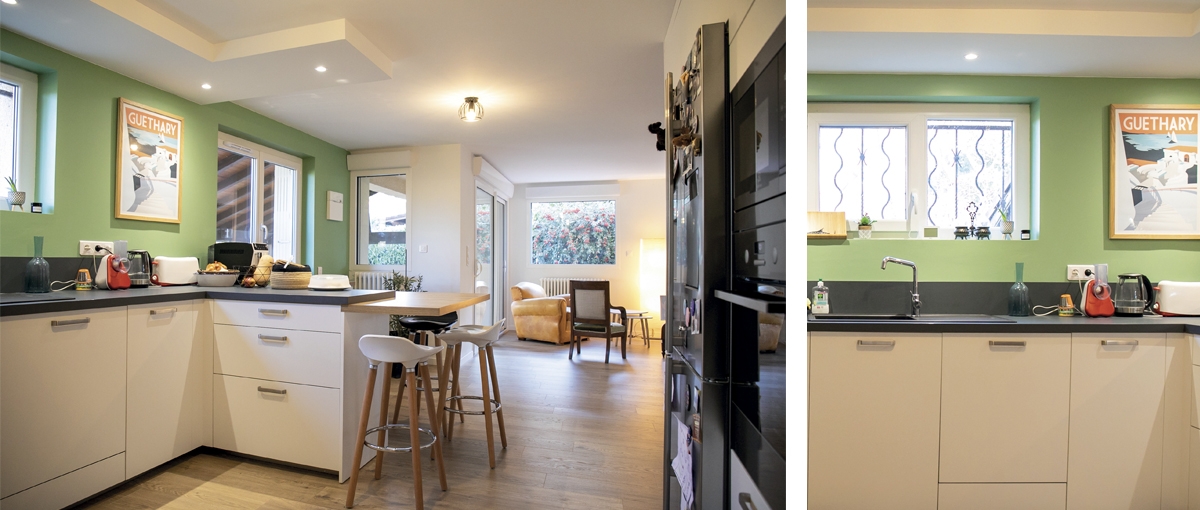 Ce projet a été l’occasion de réaliser une rénovation énergétique de la maison : isolation des murs, remplacement de certaines menuiseries, isolation du garage et installation d’une pompe à chaleur air-eau.