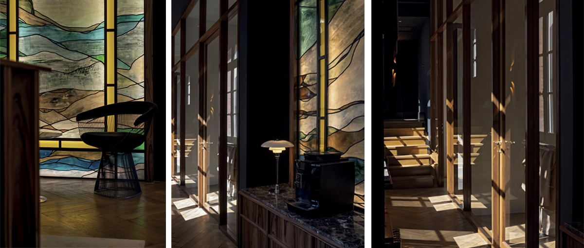 Le projet consiste en l’aménagement d’une étude d’avocat dans la prestigieuse rue Théodore Ozenne dans le quartier Saint-Etienne à Toulouse. Les volumes de l’étude ont été entièrement restructurés et repensés en respectant le caractère du lieu. Il semblerait que les lieux n’aient pas été remaniés et qu’ils aient toujours été ainsi. Une fois la porte franchie, le mobilier, dessiné sur mesure, nous invite à apprécier le choix esthétique de l’ensemble du projet. Il suit les lignes directrices de l’Art Déco qui entrent en symbiose avec l’existant. Les vitraux, aux motifs abstraits spécialement pensés, dessinés et conçus sur mesure pour le projet, rappellent un héritage artisanal revisité dans un style résolument moderne. Les deux verrières, qui singularisent fortement le projet, créent un certain raffinement et renforcent la sensation d’espace et de sérénité. Les bureaux incarnent ainsi une vision intemporelle et élégante, véritable lieu de vie empreint de subtilité, idéale pour des moments de réflexion ou de collaboration.