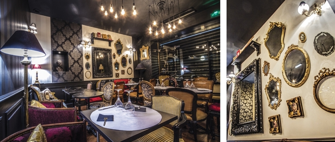 C'est dans une atmosphère chic et feutrée proche des Carmes que les Enfants Terribles vous accueillent. Le restaurant propose une cuisine gourmande mais décontractée dans un espace convivial pensée par le Cabinet de Bernard Catugier. La décoration mêle le chic à l’éclectique, le baroque au style anglais. Dans ce cadre qui se veut « boudoir raffiné », l’univers fait la part belle à un patchwork, entre couleurs, matières et imprimés. Tout l’art de Bernard Catugier et Cécilia Febrer, architectes d’intérieur a consisté à mixer différents papiers peints, tout en y ajoutant des touches d’imprimés marqués. On note également l’utilisation d’objets, chinés auprès d’antiquaires obtenus et restaurés par la maîtresse des lieux, pour être en harmonie avec l’espace. Le talent de Sébastien Langloys, sculpteur toulousain est mis en lumière avec un buste et un dessin de Jean Cocteau, l’auteur du livre éponyme du restaurant toulousain. Côté matériaux, un parquet en chêne massif a été posé, un comptoir en granit du Zimbabwe fait écho aux plafonds noirs et les panneaux en bois rapportés sur le comptoir ont été chinés par la maîtresse des lieux, et restaurés par un ébéniste. Enfin, la lumière savamment travaillée, se présente au moyen de suspensions fils créant un ciel lumineux saisissant.