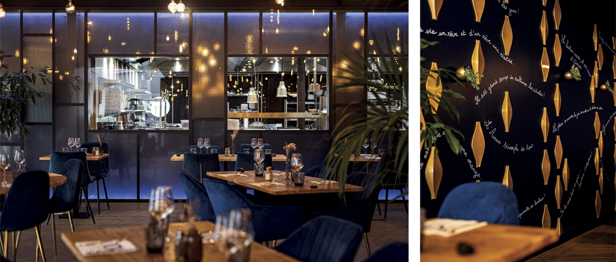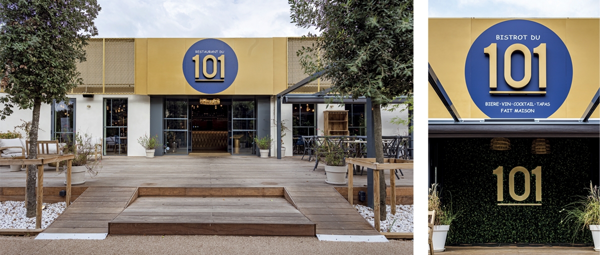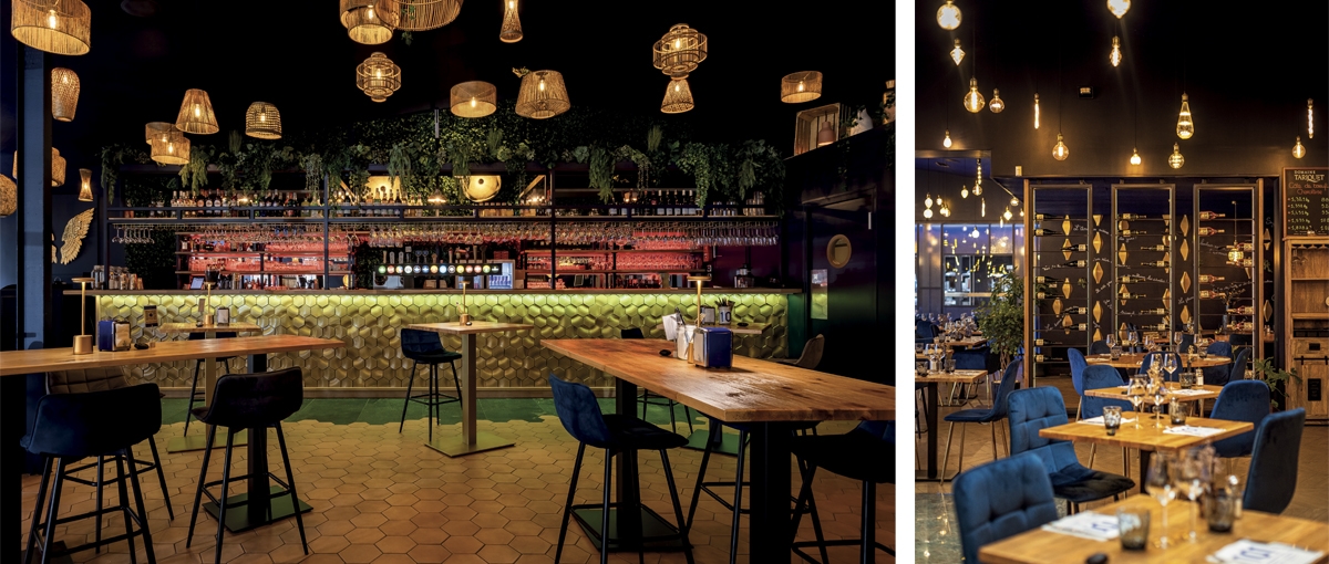 Situé dans l'est toulousain, au bord de l’Hers, ce projet de rénovation transformera une ancienne salle de sport en un complexe accueillant un restaurant avec terrasse et un bistrot. Dès l’entrée, le restaurant se distingue par un bar central doré, pièce maîtresse autour de laquelle règne une ambiance sophistiquée et accueillante. Un majestueux arbre apporte une touche naturelle, tandis que les teintes bleu nuit et dorées créent une atmosphère raffinée. Le bistrot, quant à lui, mêlera chic et originalité en alliant nature et design. Des matériaux soigneusement sélectionnés et des lumières tamisées diffuseront une chaleur enveloppante, invitant à la détente pour une expérience mémorable. Les extérieurs feront l’objet d’une refonte complète afin de doter le bâtiment d’une nouvelle identité visuelle qui s’intégrera harmonieusement dans le paysage environnant. Les accès au restaurant et au bistrot suivront une charte graphique unifiée, avec des enseignes soignées qui renforceront la cohérence visuelle du complexe. Ce projet a pu aboutir grâce à une étroite collaboration avec les différents acteurs du projet et l’investissement de chacun.