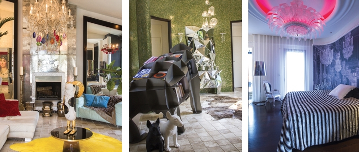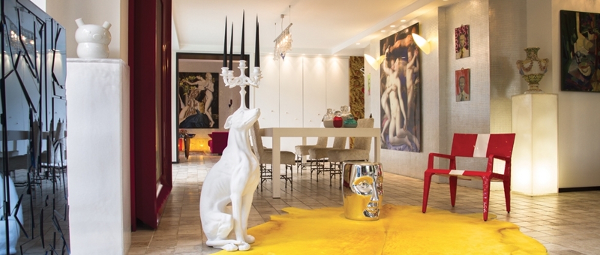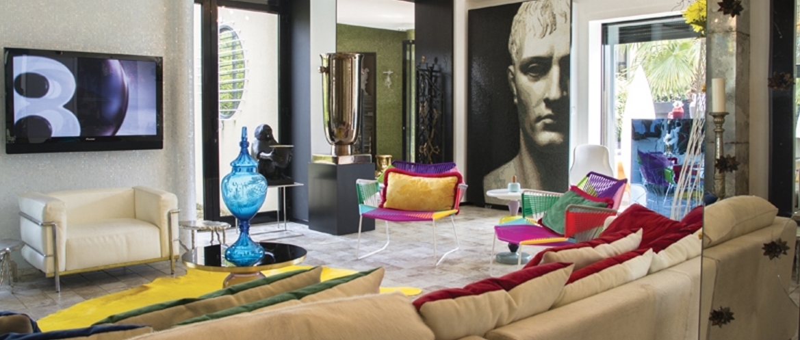 Architecte DPLG, Alain Zemlianoy, est aussi architecte d’intérieur et designer. Pour « ce riad dans le ciel toulousain », il a réalisé la rénovation et l’extension d’une ancienne ferme pour offrir un espace qui allie le classique au contemporain, le chaleureux à la singularité. Après huit mois de travaux, les habitants profitent de cet espace pleinement optimisé de style « baroco design » avec, au dehors, un univers qui offre sérénité et abondance. Avec un patio privé, protégée grâce à des murs qui s’élèvent jusqu’à 6 mètres de hauteur, le parti pris de cette bâtisse est clairement défini : « Pour vivre heureux, vivons cachés » ! Fluide, lumineuse et sereine, la maison est réalisée de sortes que toutes les pièces s’ouvrent les unes sur les autres, en enfilade. Les tonalités, à dominante blanches, s’offrent des jeux de couleurs pour amener la gaieté à l’ensemble. Côté matériaux, les émaux, la pâte de verre, le bois d’ébène, la pierre au sol dite « pierre de monastère » ont la part belle. Pour l’outdoor, il est traité comme une pièce à part entière, avec du bois ipé. Côté décoration, on retiendra notamment la cheminée réalisée en plaques de métal, signée de l’artiste toulousaine Vera Kunodi et des meubles signés Edra, Frères Campana ou encore Hayon.
