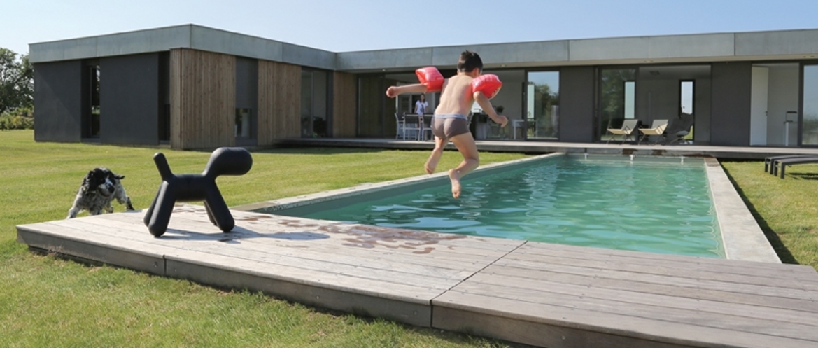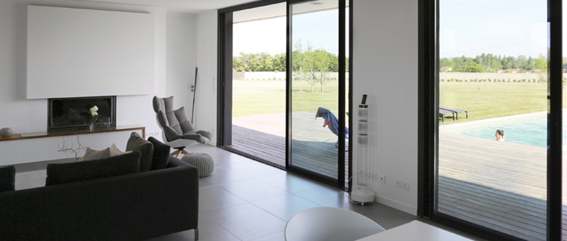Malgré la vue sur les Pyrénées, le choix d’un plan assez horizontal s’est imposé, discret, effacé dans cet environnement paysager sans relief. Inscrit dans une démarche de production contemporaine, et inspiré des contraintes locales, le projet énonce un langage simple, réglé, presque japonisant par moment.