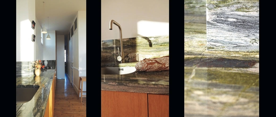 Niché dans un coeur d’îlot, ce petit appartement a fait l’objet d’une rénovation complète. Il s’agissait de créer dans ce lieu, un trait d’union entre deux pièces principales. C’est l’espace cuisine qui a joué ce rôle. Un long plan de travail en granit a fait le lien entre la chambre et l’espace de vie. L’utilisation des matériaux bruts comme la pierre et le bois pour l’habillage de l’ensemble des portes de rangements a permis de révéler et compléter ceux déjà existants tel que les parquets et les marbres des cheminées. Un travail, de matières, de mobilier et d’ambiance nous a permis de raviver l’âme du lieu, cachée sous les multiples interventions passées.