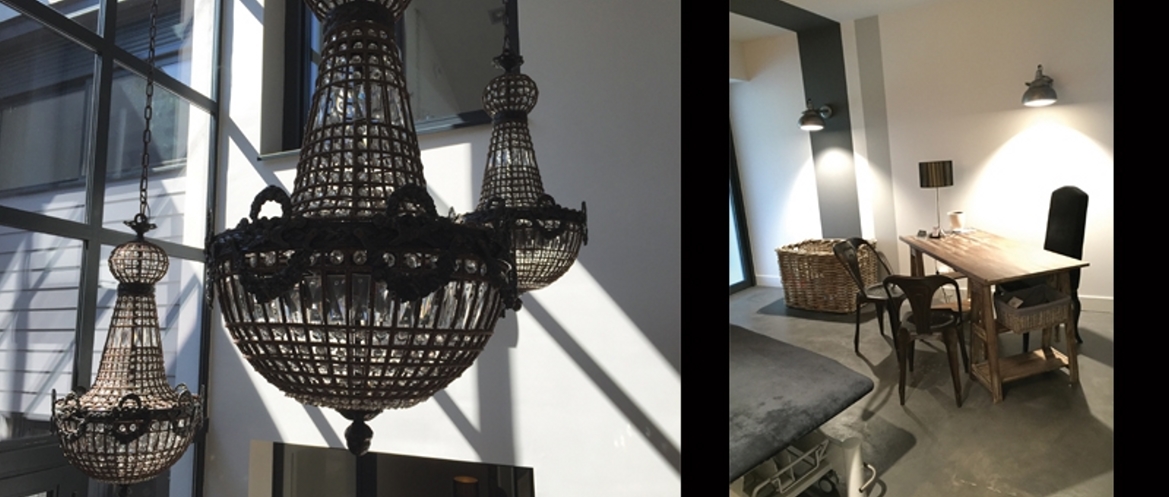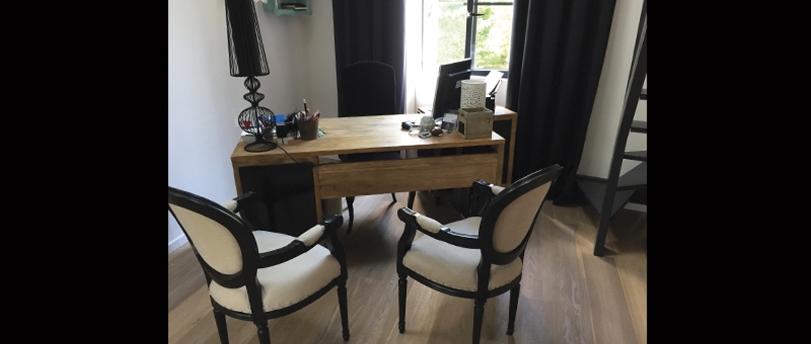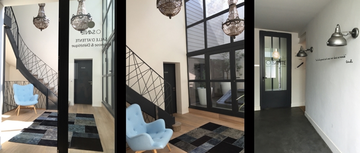 A l'origine de cette transformation, un ancien corps de ferme, situé sur une place de village de campagne, aux alentours de Toulouse. De ce bâtiment est né, au terme de 9 mois de travaux, un cabinet médical, avec des appartements à l’étage. L’idée était de garder cet esprit de grandes ouvertures, privilégier le volume avec des plafonds assez hauts mais surtout l’objectif était de faire pénétrer la lumière au maximum. Il a fallu donner, pour les pièces centrales et les salles de consultations, des choses plus intimistes. L’ensemble correspond parfaitement au style des propriétaires des lieux, ostéopathe et kinésithérapeute qui aiment le côté « indus », un peu branché, tout en utilisant un écrin, très ancien. Tout l’enjeu était donc de favoriser la cohabitation entre ces deux ambiances grâce à l’utilisation de matériaux tels que le bois, le métal, mais aussi le choix des luminaires venus d’Angleterre et de Belgique, de divers objets chinés, tels que des tables basses « troncs d’arbre » provenant du Danemark. Cette réalisation s’habille alors d’un ensemble doux et chaleureux dans un univers marqué par le métal.