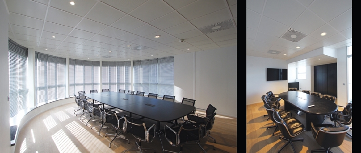 Les travaux réalisés en un mois pendant les congés d’été ont eu pour objectif de remettre au « goût du jour » les bureaux de l’étage de direction de la société ATR dans un bâtiment construit en 1990. La surface du plateau a été redistribuée en 2 salles de réunions plus adaptées aux besoins de l’entreprise, mieux éclairées avec les nouvelles techniques par lampes LEDS, mieux insonorisées et équipées des systèmes de communication actuels (écrans plats, système vidéo…). Le système d’occultation des locaux a été équipé de stores vénitiens orientables repliables avec télécommande radio. Le mobilier a été remplacé par des sièges contemporains en aluminium et maille ou cuir.
