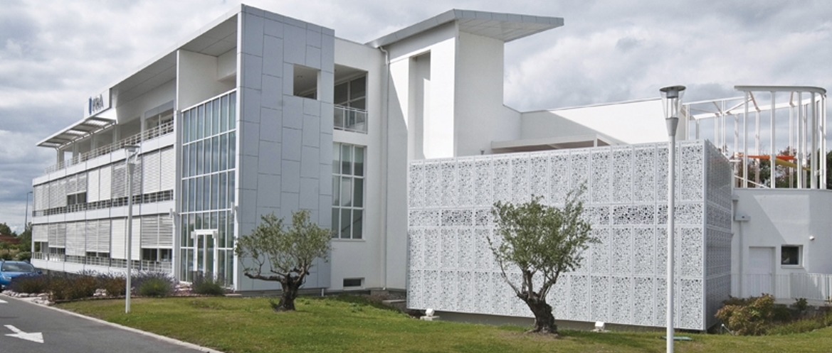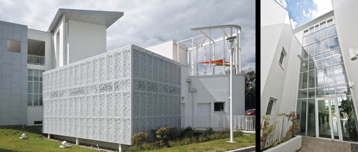 Cet immeuble de bureaux s’implante dans une zone en devenir en rapport avec l’arrivée du métro sur Labège. Le terrain d’assiette autorise la création de places de parking en évitant une présence trop importante sur la façade principale. Le caractère architectural du bâtiment répond à une volonté de sobriété et d’efficacité de la part des instances dirigeantes de Lyra-Network. Notre principe conceptuel s’oriente autour de trois paramètres essentiels : 1 - Favoriser un fonctionnement optimal pour les espaces de travail en dissociant les zones de détente et de réception (2 000 m2 utile au total). 2 - Garantir les notions de sécurité et de contrôle des accès selon les exigences de l’activité professionnelle. 3 - Affirmer un traitement de façade qui s’adapte d’une part aux différentes orientations (nord-sud) et d’autre part à la typologie des locaux concernés (à l’arrière de ces façades). L’élégance de ce bâtiment s’articule autour de nuances de gris, d’ombre et de lumière, de pleins, de vides et d’éléments ajourés dans une blancheur volontaire.