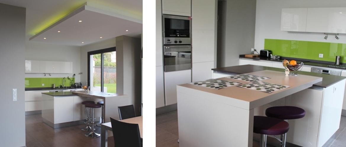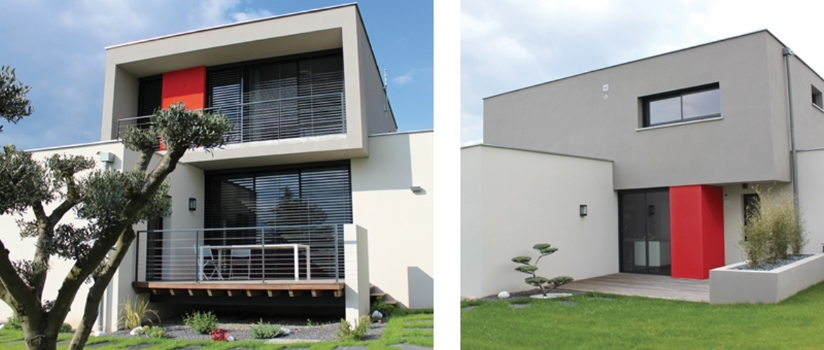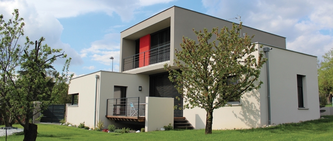 Sur une parcelle en légère pente vers le Sud, la maison se détache du terrain et se hisse afin de faire profiter de la vue, au séjour et à la chambre principale, par-dessus la végétation conservée en contrebas. Elle garde cependant une accroche importante au terrain naturel, sur ses autres façades. Ainsi, la cuisine profite d’une terrasse de plain pied, à l’Est.