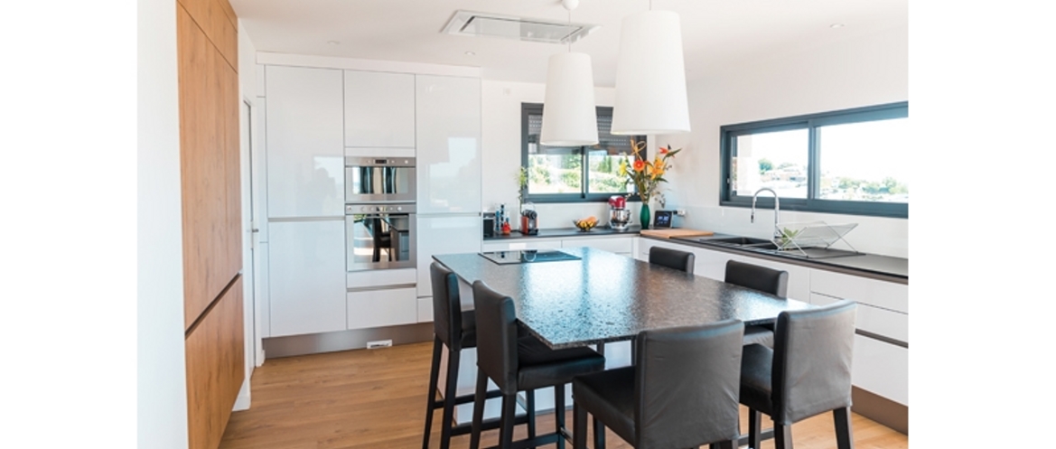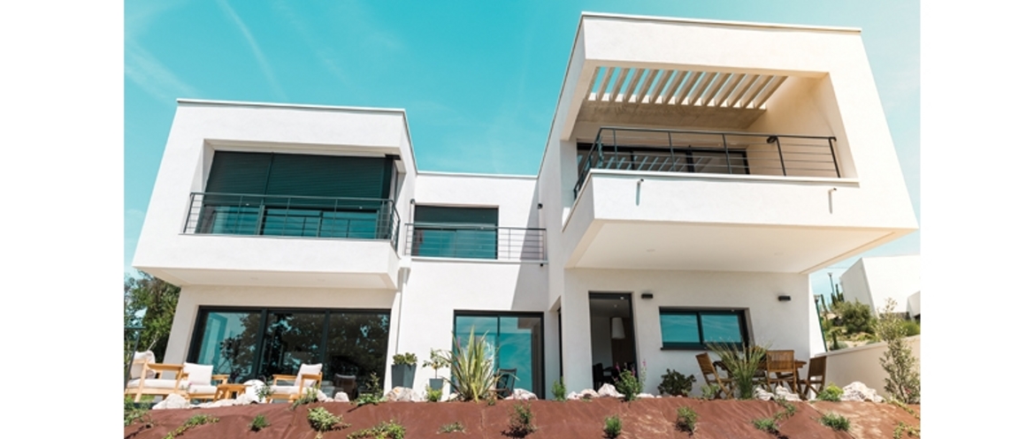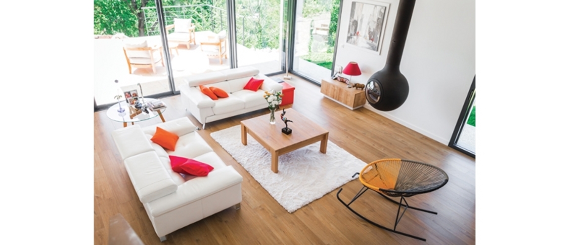 Le projet s’installe sur les coteaux surplombant l’Ariège. Un mur directeur rouge longe ce coteau boisé et définit d’un côté la pièce de vie et de l’autre la cuisine et les pièces de services. Au Sud-Ouest, les espaces intérieurs s’ouvrent sur une terrasse qui surplombe le jardin et magnifie l’horizontalité du panorama pyrénéen. A l’étage deux ailes qui se répondent s’installent chacune en porte-à-faux. Le panorama en devient plus spectaculaire du fait des surplombs. La terrasse de l’étage est protégée par une ombrière en béton qui crée d’agréables filtres de lumière. Si cette maison est imposante par la taille de ses surplombs, une fois à l’intérieur, ce sont réellement les liens avec le paysage qui dominent.