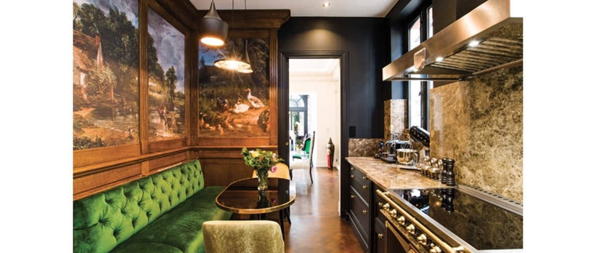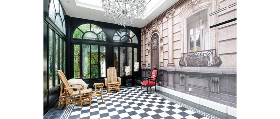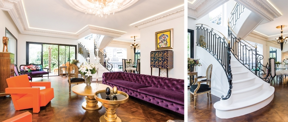 Située au coeur de la Ville rose, cette villa illustre parfaitement la rencontre entre deux styles : le classique et le contemporain. Pour cette rénovation totale, l’ensemble des pièces intérieures, du sol au plafond, est neuf et empreint d’un esprit baroque. Chaque pièce offre son univers, dans un style classique et élégant. La cuisine en laqué noir et granit mordoré, le coin salle à manger en angle à l’image d’une ancienne brasserie apportent un look vintage agréable. La verrière, recréée à la parisienne, le toit vitré tout comme le carreau de ciment au sol agrémente ce décor riche et chaleureux. La chambre des maîtres des lieux d’une surface de 90 m2, a été conçue telle une boutique parisienne de prêt-à-porter. La tête de lit centrale teintée de rouge éclaircit la pièce, le dressing ouvert en chêne sable, rétro-éclairé ajoute au raffi nement de l’ensemble. L’ensemble de cette magnifi que rénovation, sur une surface de 400 m2 séduit par la fl uidité de ses lignes, son style et permet de « laisser respirer » une ambiance cossue et singulière.