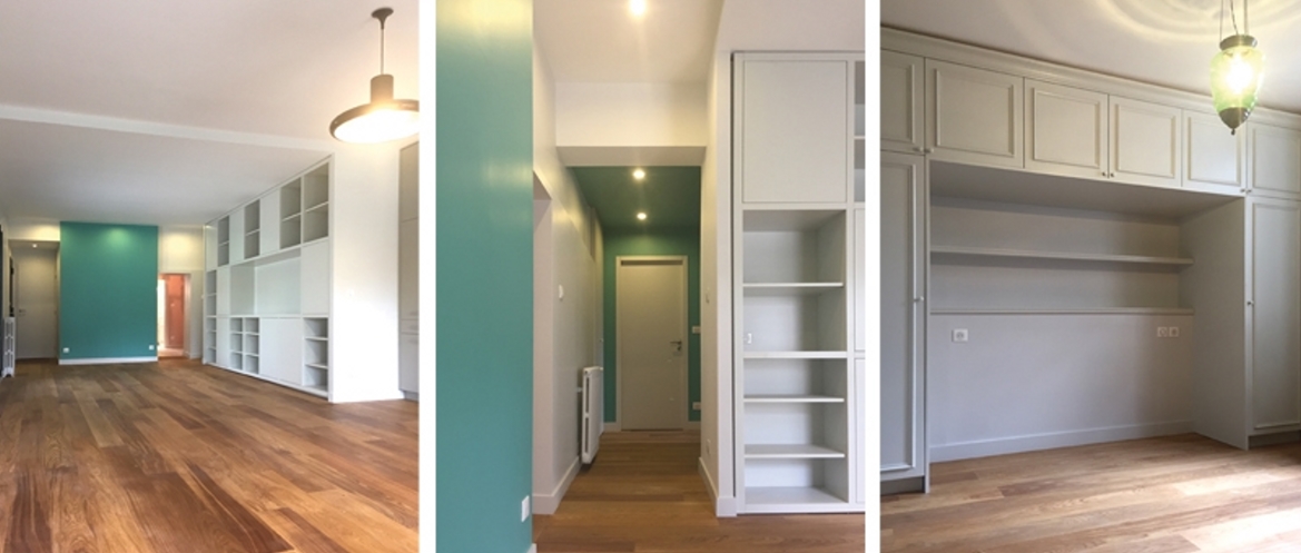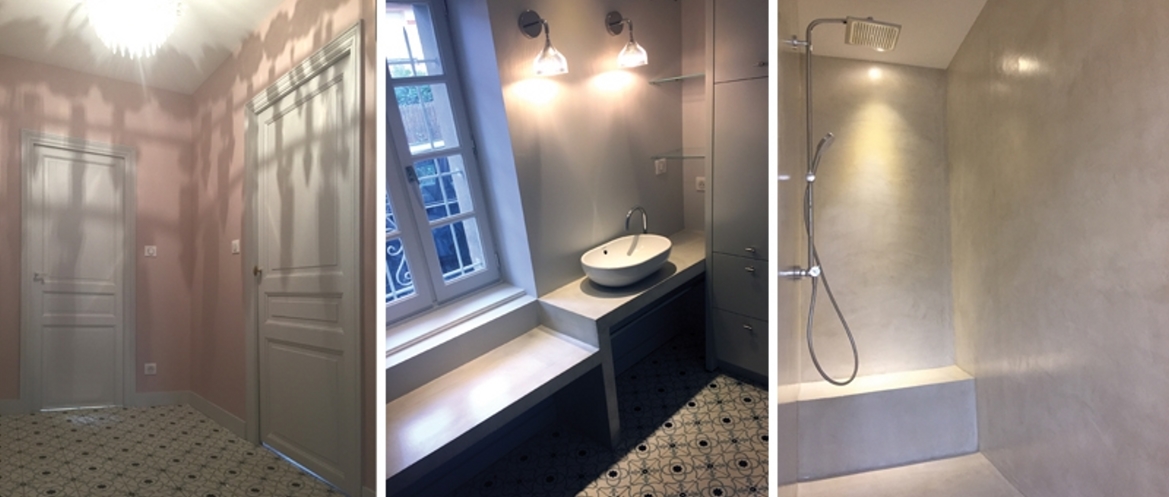 Cette ancienne maison de maraîcher avait été modifi ée une première fois, par la création d’une extension, pour accueillir une famille. Cette fois-ci, il s’agissait d’en adapter les espaces pour sa future occupante, nouvellement retraitée. Ainsi, à la demande de la nouvelle propriétaire, les espaces ont été pensés pour un éventuel futur besoin d’accessibilité PMR : passages libres plutôt que portes, douche extra large de plain pied, plans de travail double hauteur... L’ensemble des éléments menuisés de la maison, voulus en grande quantité pour un maximum de rangement, a été traité dans des tons neutres afi n de permettre à son occupante d’y installer les meubles rustiques qu’elle affectionne.
