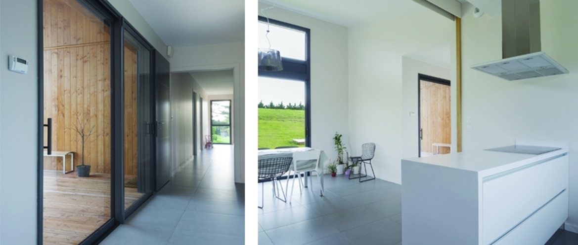 Les baies vitrées sont équipées de brise-soleils orientables permettant de contrôler les apports solaires et d’offrir des ambiances tamisées.