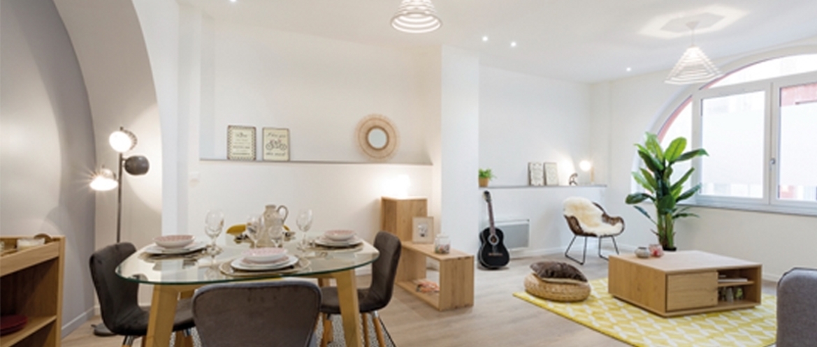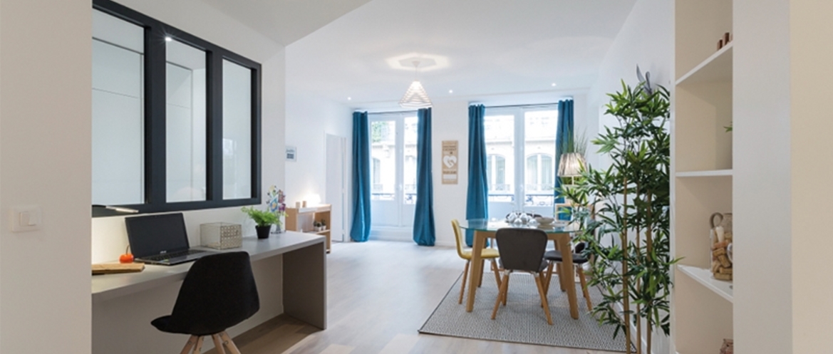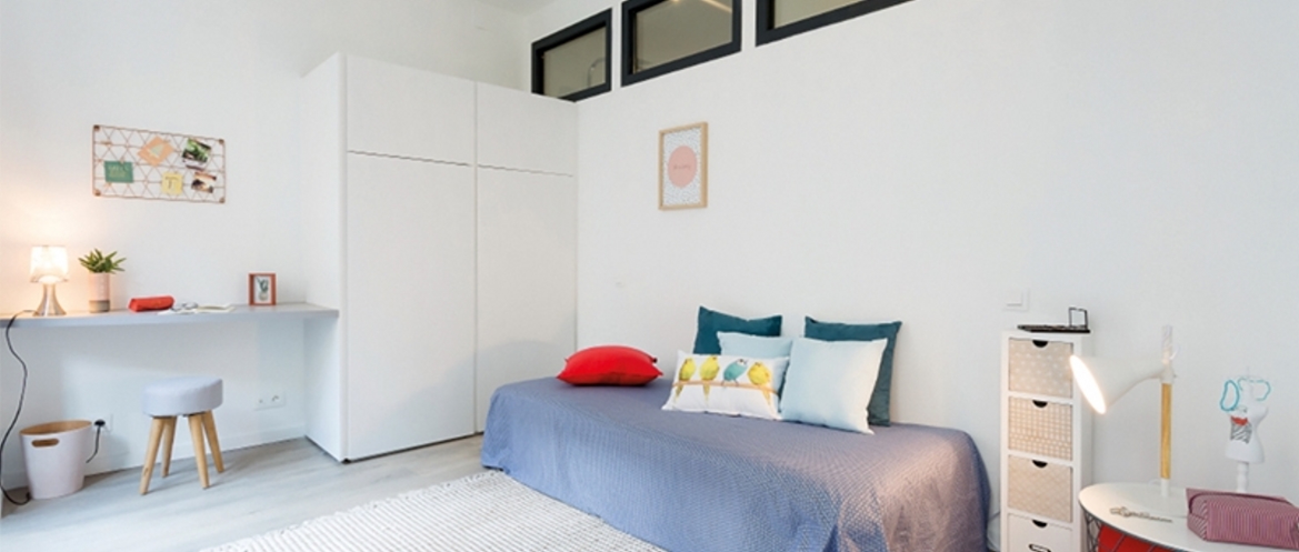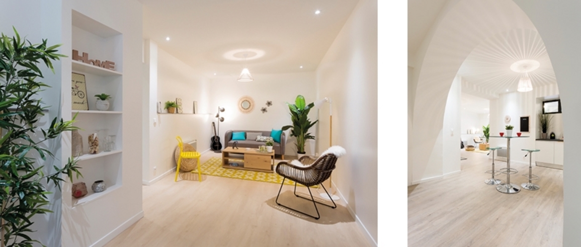 Idéalement situé au coeur de Toulouse, le projet porte sur la restructuration d’un établissement d’enseignement privé en 2 appartements. Le plateau était composé de petites pièces en enfilade totalisant 212 m2. L’enjeu du projet était de créer deux appartements mono-orientés tout en apportant le maximum de lumière naturelle. Le choix des verrières est devenu la réponse la plus adéquate pour répondre à ses contraintes. Dans l’appartement de 95 m2, le faux plafond tout en courbe sert à la fois de lien et de transition entre la salle à manger et le salon. Adossé à la verrière de l’entrée, on retrouve un bureau en médium teinté reprenant lui aussi la courbe du faux plafond. La cuisine et la salle d’eau profitent d’une verrière en partie haute du mur. Le carrelage au sol hexagonal anthracite apporte un contraste décalé et tendance. Le deuxième appartement de 105 m2 profite d’une grande luminosité par des grandes fenêtres en arches. Pour les deux chambres ont été dessinés des bureaux et des dressings sur mesure. Une verrière en partie haute apporte la lumière et vient s’insérer dans les meubles de cuisine. Les deux salles d’eau offrent une douche à l’italienne et un plan de vasque en corian. Il aura fallu 8 mois de travaux pour redonner un nouveau visage à ces deux appartements.