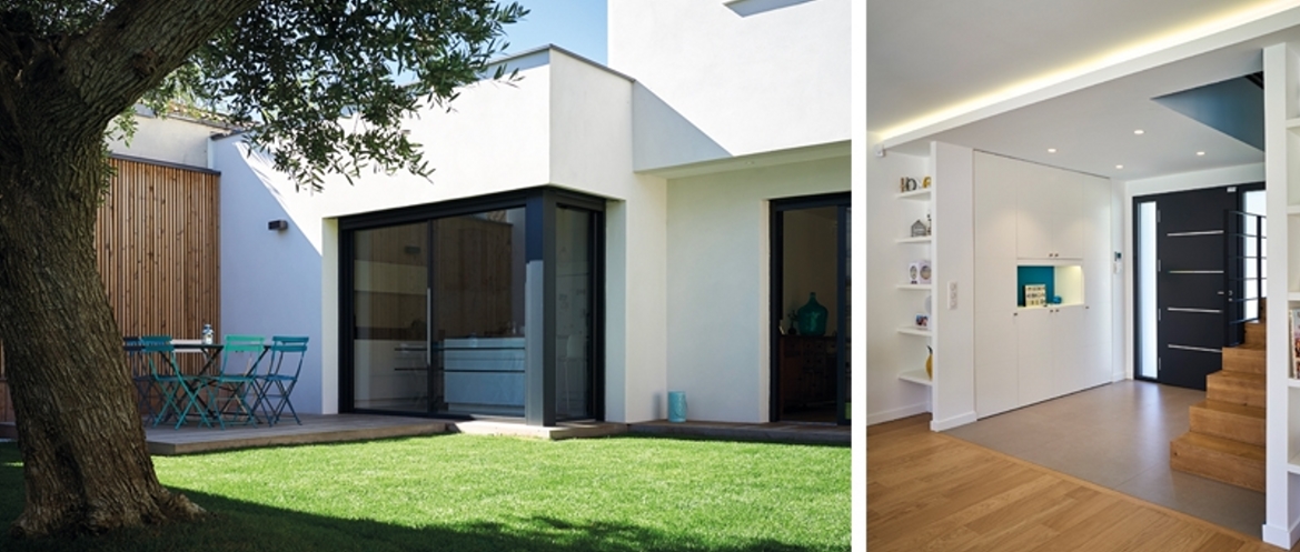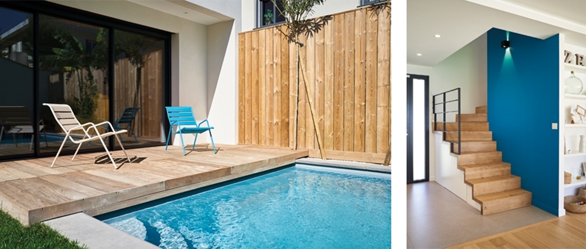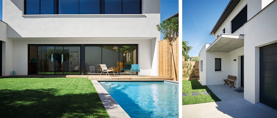 Sur le quartier prisé de la Côte Pavée, une ancienne petite maison délabrée a été entièrement démolie pour laisser place à une belle parcelle afin de construire cette villa neuve. Avec une volonté première de créer un nouveau cadre de vie lumineux, ouvert et familial pour les nouveaux propriétaires, notre démarche s’est orientée sur une maison facile à vivre et orientée sur son jardin intime. Le rez-de-chaussée se compose des pièces de vie largement ouvertes sur les espaces extérieurs. Des jeux de plafonds et corniches lumineuses ont permis de marquer les différents espaces sans pour autant les cloisonner. La cuisine en continuité du salon séparée par une verrière d’atelier, est ouverte sur sa terrasse en bois côté jardin intime. A l’étage, les chambres et l’espace « détente » sont des pièces, elles aussi largement ouvertes sur le jardin afin d’apporter un maximum de lumière et d’agrandir visuellement les espaces. Les salles d’eau côté rue sont protégées par des lames de brise soleil orientables, afin d’apporter lumière et protection visuelle des usagers. Le jardin avec sa piscine et ses espaces de détente permet aux propriétaires de profiter de ce nouveau cadre résidentiel à proximité des écoles, commerces… et cela à pied, l’objectif initial de cette nouvelle maison !
