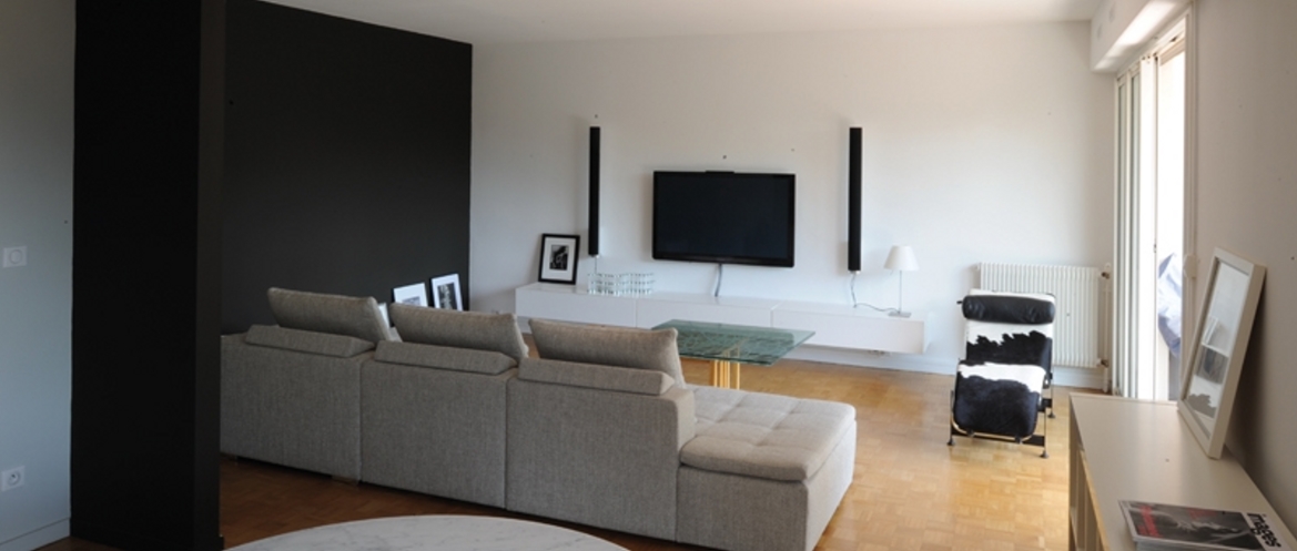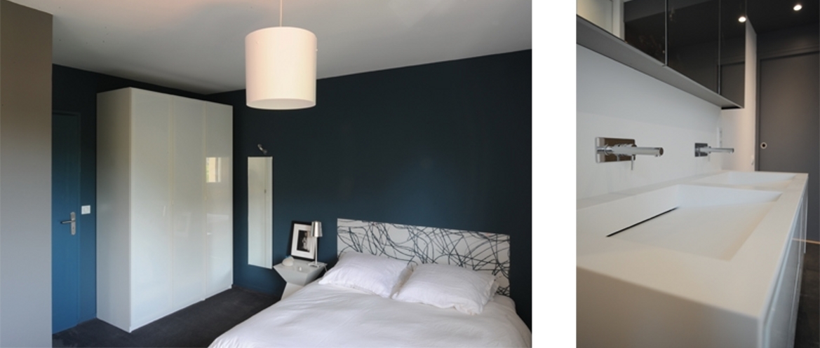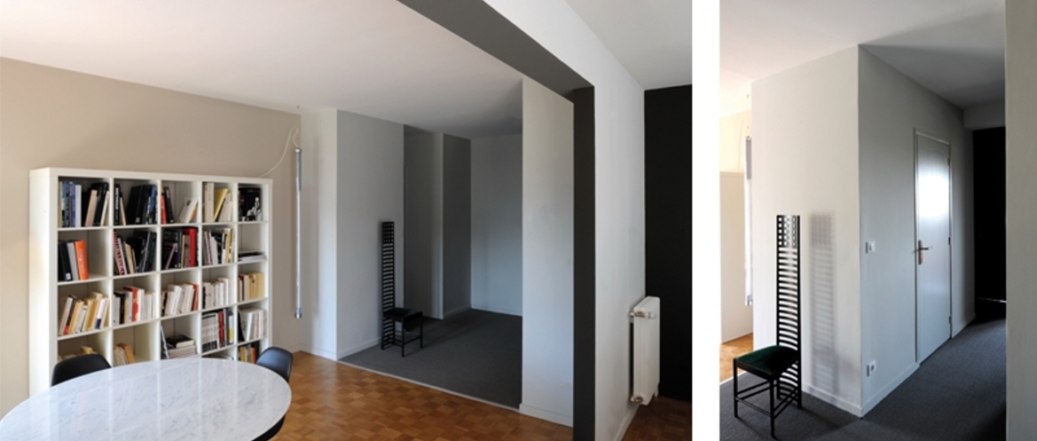 Cet appartement se situe dans l’un des cinq ensembles immobiliers au sein du parc du château de Gounon, au sud-ouest de Toulouse. La résidence, inaugurée en 1969, fut pensée avec de généreuses surfaces et de belles volumétries pour chaque appartement. Mais composé selon un plan classique avec l’entrée au centre, distribuant les pièces de jour et de nuit, l’appartement manquait de lumière. La suppression de quelques cloisons a ainsi permis de faire entrer celle-ci au centre de l’appartement, permettant aux généreux volumes intérieurs de mieux se dessiner. Avec la collaboration de la plasticienne coloriste A. Delmas, le choix des couleurs a permis de mieux écrire ces lignes et ces volumes. Le mobilier en corian, dans la salle de bains et pour certains meubles, dessiné et réalisé avec délicatesse, vient s’insérer discrètement dans l’ensemble. Il amplifie le caractère épuré des volumes, tout en gardant la fonctionnalité des pièces. Ainsi, à partir des qualités volumétriques initiales de l’appartement, la réécriture des lignes préexistantes a permis de gagner en luminosité et en lisibilité. La réhabilitation d’un bâtiment existant est toujours un défi. Comprendre sa structure existante, et par le travail du détail arriver à le sublimer avec raffinement, est un plaisir.