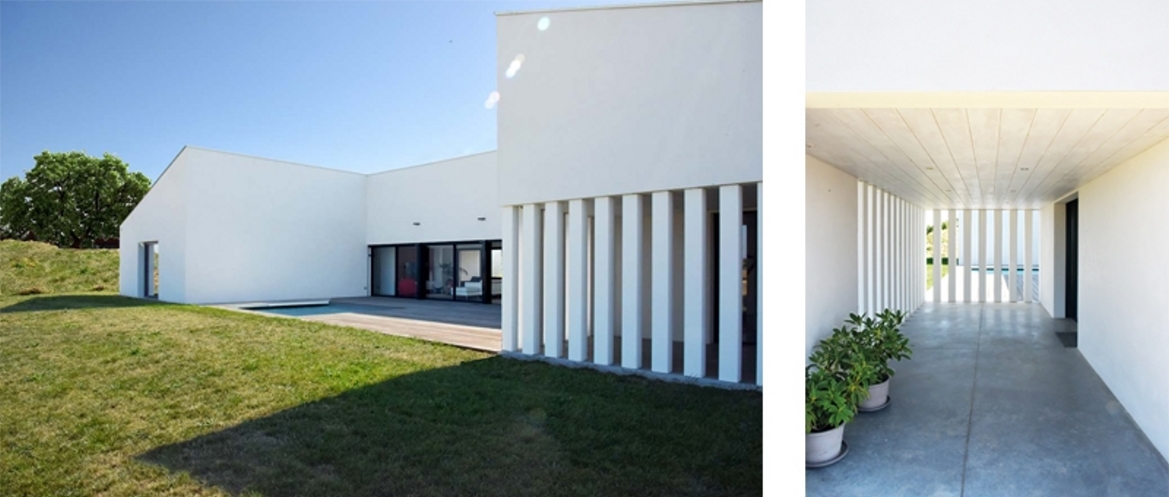 Le projet consiste à créer une maison d’habitation très ouverte sur le paysage environnant. La maison adopte la forme d’un H sobre, constitué de trois volumes monopente, protégeant ainsi la terrasse et la piscine des vents dominants. Deux ailes périphériques accueillant entrée et garage pour la première et chambres pour la seconde viennent cadrer le volume séjour, salle à manger/cuisine entièrement vitré au Nord et au Sud et totalement ouvert sur la vue magnifique. La sobriété des volumes est renforcée par l’emploi limité de matériaux.