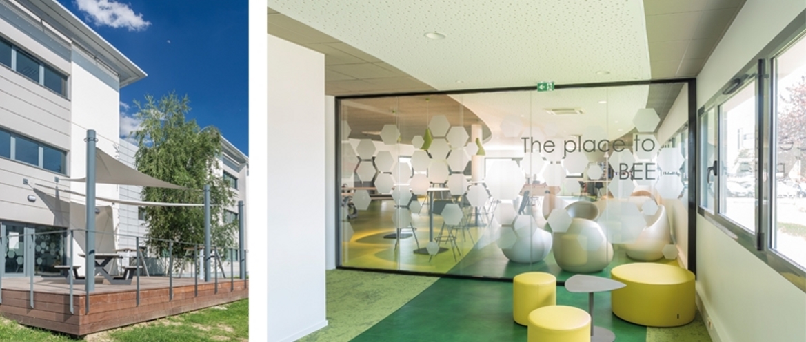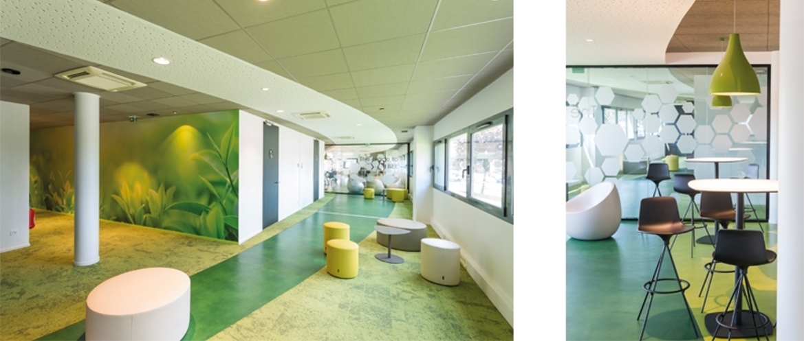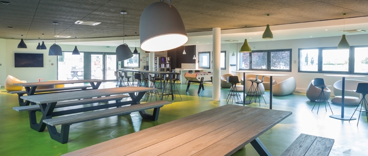 Le site du campus tertiaire Millénnials à Blagnac manquait d’un espace commun à tous les occupants. À travers un concours, l’agence SMAI s’est vu confier la mission de transformer un plateau de bureau de 500 m2 environ en rez-de-chaussée en un pôle multi-usages dédié à la vie, la cohésion, le partage et l’esprit « Millénnials » de ce campus. La cafétéria et la terrasse extérieure proposent des espaces de convivialité à partager pour la pause déjeuner, mais aussi qui peuvent être utilisés en mini réunion et espaces de travail sur d’autres plages de la journée, mais aussi en pot de fin de journée entre collègues… D’autres typologies d’espaces proposent aussi des vestiaires pour les plus sportifs et des salles de réunion, worshop et amphi via un système de réservation en ligne. Une attention particulière s’est portée sur le choix des matériaux et le confort d’usage et acoustique des utilisateurs, et une ambiance avec le « vert » comme fil conducteur en liaison avec la végétation et en connexion avec tous les espaces.