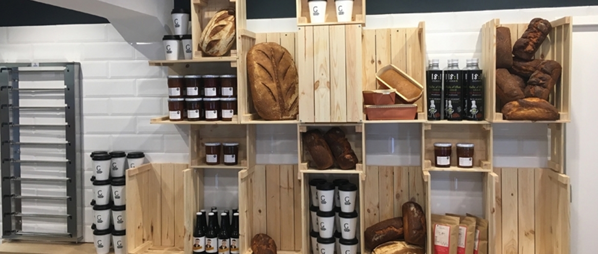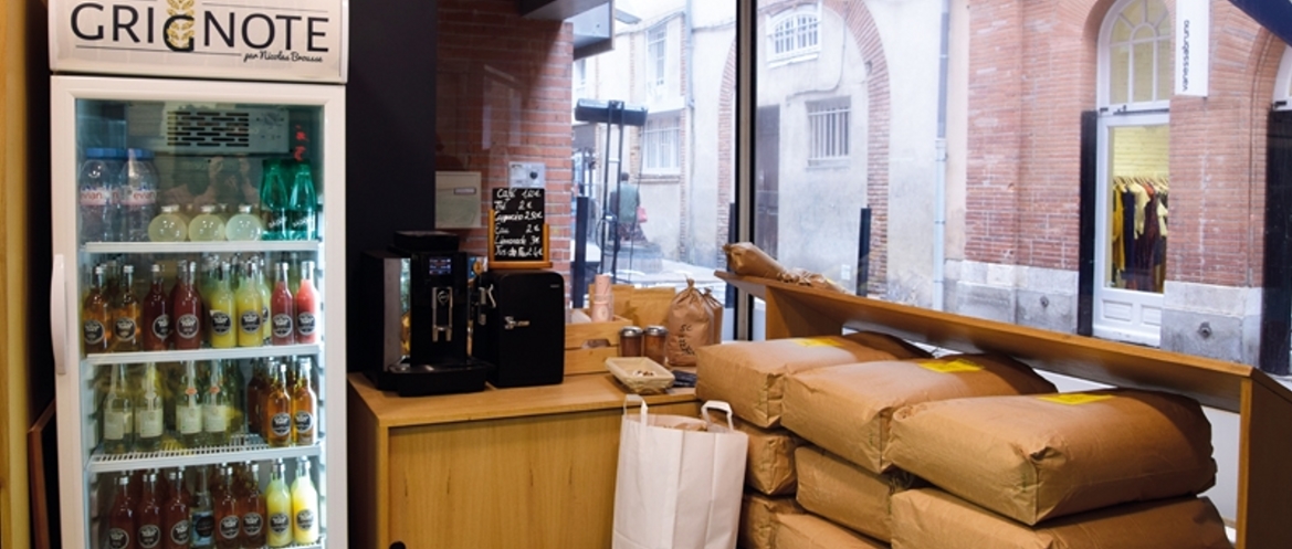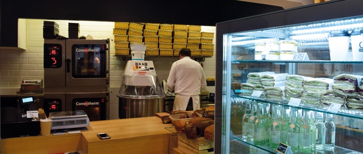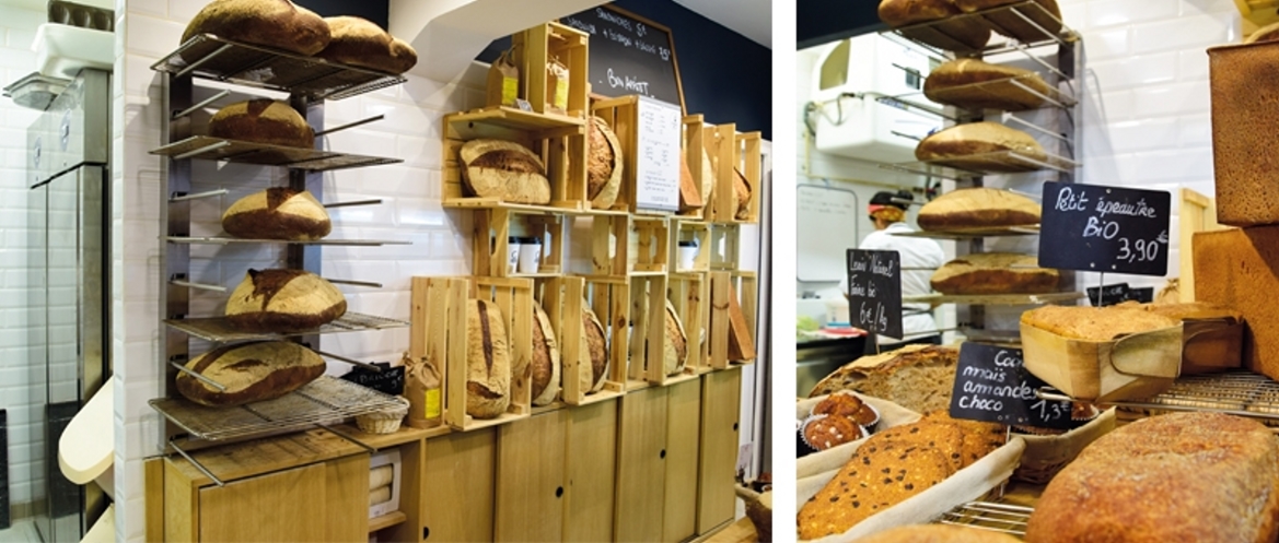 Dans une rue un peu cachée donnant sur la place Saint-Georges, deux amis décident de créer un atelier boutique pour créer du pain avec des farines sélectionnées, des levains naturels et simplement de bons produits… Dès lors, tout l’enjeu fût de réunir dans la quarantaine de mètres carrés disponibles et dans l’esprit du pain à faire, le laboratoire et l’espace de vente, le stockage et l’espace suffisants pour les clients… Le projet a cherché à simplifier pour être au plus proche de l’essentiel, un grand espace ouvert dans lequel cohabitent parfois paradoxalement la production et la relation au client, le four et les frigos, la poussière de farine et les sandwichs fins dans les vitrines… L’unité est le maître mot : unité de matériaux entre les différents espaces, unités de couleurs entre production et présentation, unité de matière sur les outils et les mobiliers, le tout facile d’usage et d’entretien avec comme objectif un lieu de travail et de commerce agréable, chaleureux, élégant et de bonne facture… comme leur pain !!