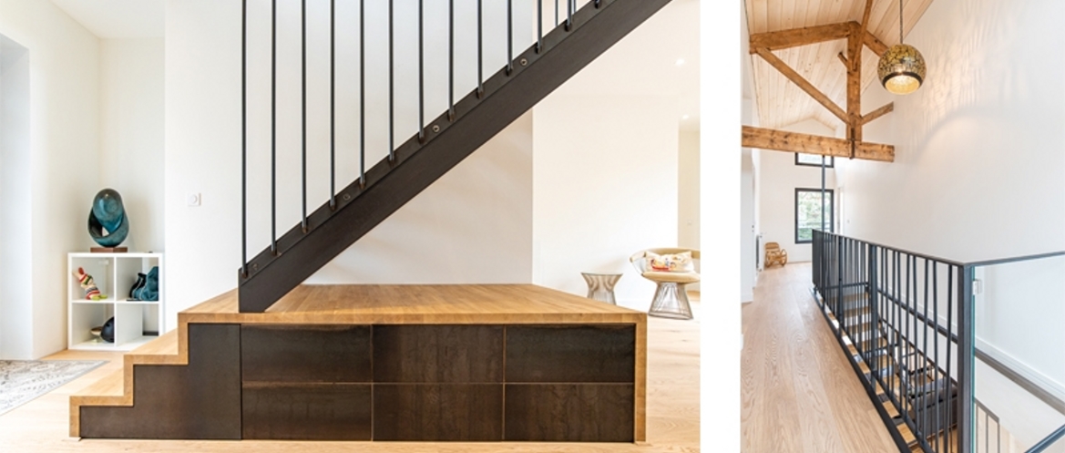 Cette modeste habitation des années 30 a conquis, par sa simplicité volumétrique, le cœur d’une famille toulousaine. Le projet a consisté à restructurer l'habitation principale et à créer deux extensions. L'étude de la typologie de la maison à pignon a permis d’inscrire le projet architectural en cohérence avec le bâti existant. Ainsi, la symétrie en façade est conservée tout en accompagnant des lignes contemporaines. Les volumes intérieurs et leur escalier central, répondent à cette même dynamique traversante. L’habitation a été rénovée, notamment avec l’utilisation d’une isolation par l'extérieur en fibre bois avec parement mixte (enduit à la chaux et bardage bois). Les deux volumes d'extension ont été traités en ossature bois et isolants bio sourcés. Ce choix renforce la verticalité sur rue alors que la façade sur jardin accepte une ligne plus contemporaine par l’utilisation du bardage bois en rez-de-chaussée reliant les extensions. La performance thermique recherchée a été assurée par la compétence d’une entreprise spécialisée dans le bois, ayant répondu à la majorité des lots : des éléments structurels jusqu’à l’agencement intérieur.