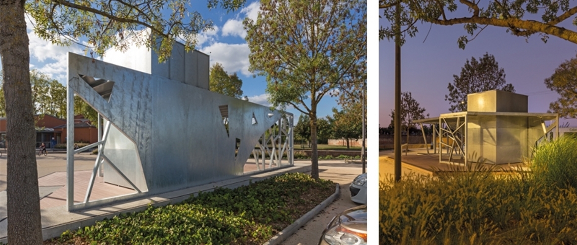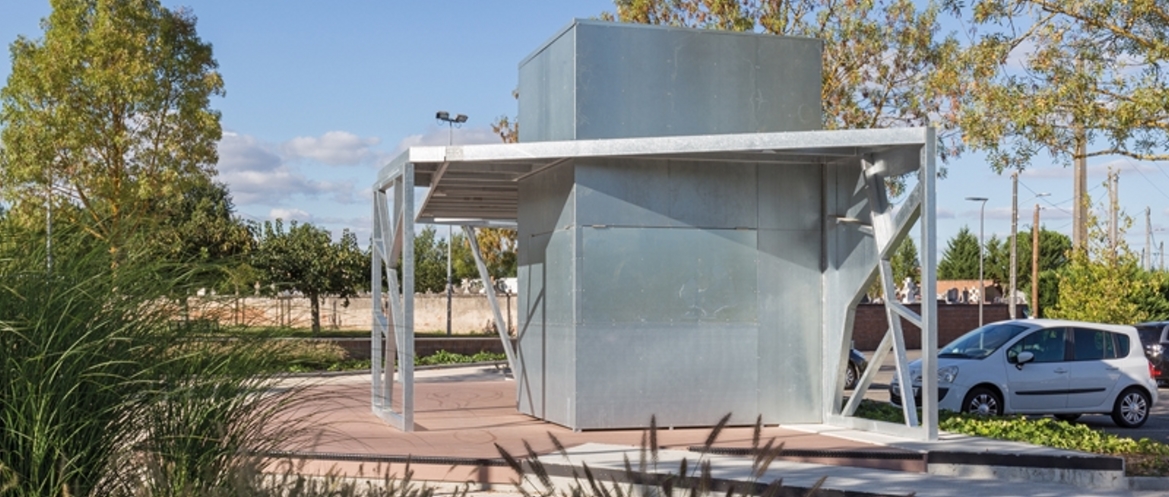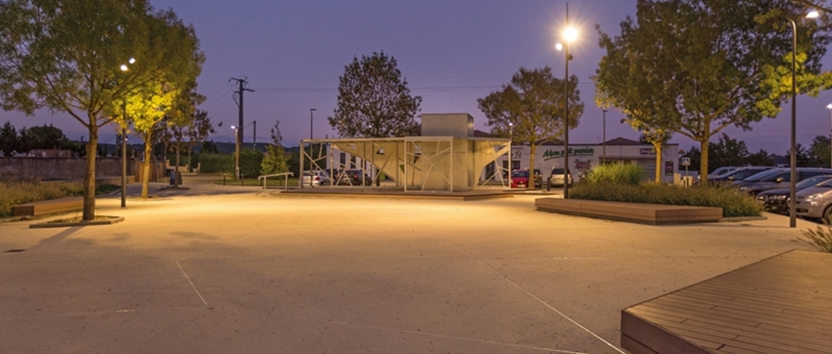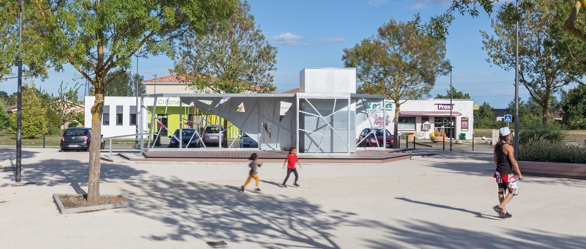 Le projet consiste à créer un kiosque sur l’espace public qui composera le mobilier urbain de la place. Ce kiosque sera à usage communal et associatif. Une structure « pergola » viendra abriter cet espace et un bloc technique fermé permettra de proposer un point d’eau et une buvette les jours de manifestations. Le kiosque fera office de signal depuis la rue et animera la place Falguières. Ce projet a été réalisé en collaboration avec les paysagistes concepteurs : « Tout est paysage », société montalbanaise.