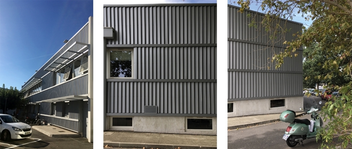 Cet immeuble de bureaux à Gramont, abrite quotidiennement plus d’une centaine d’usagers. Construit en 1975, il est représentatif d’une génération d'immeubles fonctionnels en matériaux bruts préfabriqués. Il présentait une construction solide, mais usée et très peu adaptée aux exigences d’aujourd’hui. Sans isolation thermique, protections solaires et approche globale, son usage devenait beaucoup trop coûteux et sa façade se détériorait. Plutôt que de l’exploiter à l’état actuel le maître d’ouvrage a choisi la rénovation globale pour le revaloriser. Ainsi a été réalisé un bilan des consommations énergétiques et les besoins des usagers recensés. Nous avons étudié des solutions optimales et dressé des scénarios de rénovation adaptés. Nous avons cherché à unifier la façade et intégrer les éléments rapportés dans un ensemble harmonieux jusqu’à l’aménagement des abords. Les travaux à coût modéré ont permis d’apporter du confort aux usagers, de l’efficience énergétique et des économies, de rénover et d’optimiser l’usage d’espaces désaffectés. Aux éternelles urgences économiques nous avons apporté des solutions classiques, mais aussi inscrites dans une démarche durable et éco-responsable.