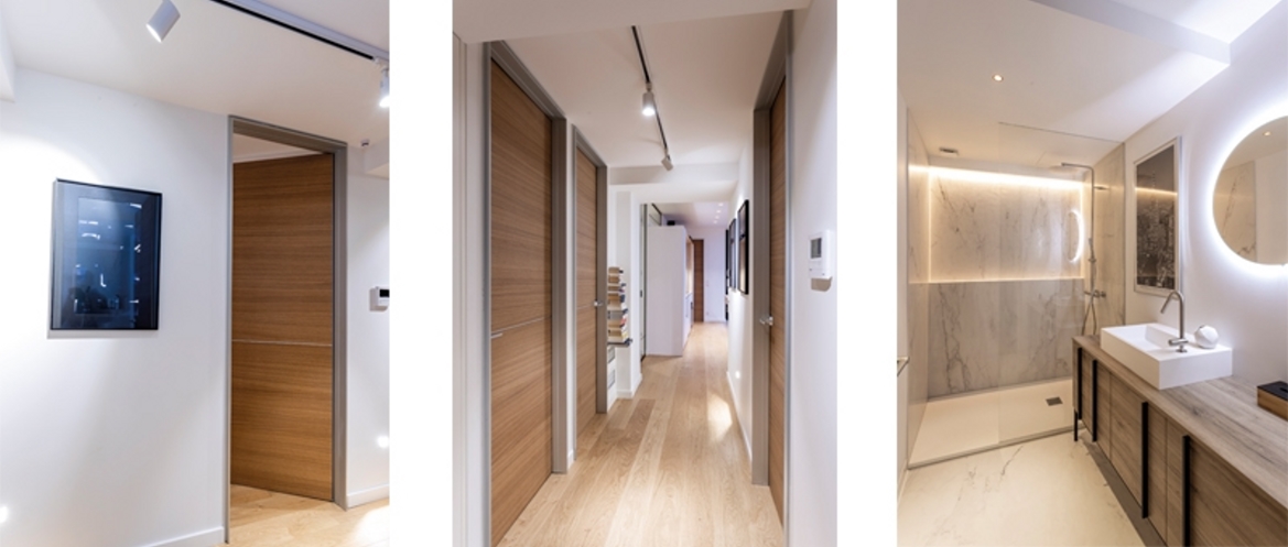 Des matériaux naturels, de la transparence grâce à la baie accordéon, quelques touches de nature... La frontière entre intérieur et extérieur est ici gommée de manière élégante, dessinant les contours d’un appartement-jardin, douillet et lumineux. Séparant la cuisine de la chambre d’enfant, un meuble-cloison intégrant la cuisine dispose d’ouvertures laissant passer la lumière. Un simple rideau à tirer après usage assure l’intimitée.