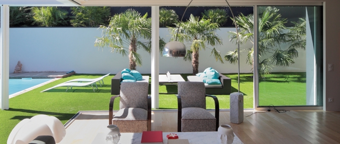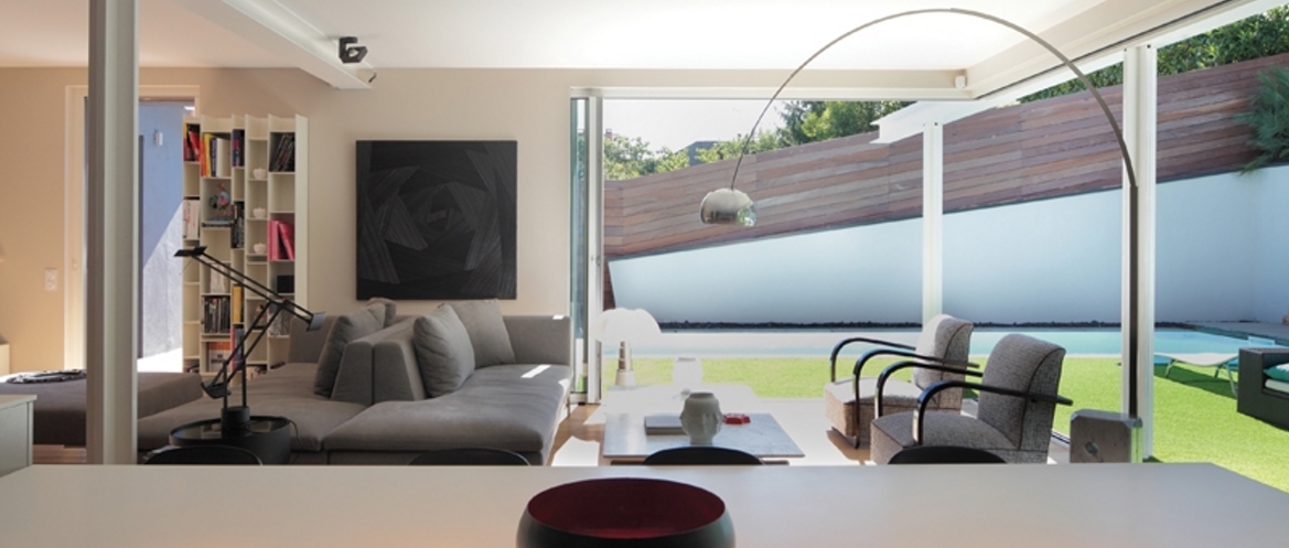 Le jardin, comme un patio fermé, est centré sur la maison, loin du tumulte de la rue. Relativement minimaliste, il prolonge l’invitation au calme.