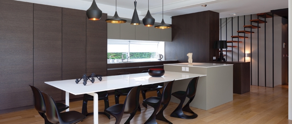 L’espace intérieur a été totalement dégagé pour créer une pièce à vivre accueillante et conviviale. Un magnifique escalier a été conservé, comme stigmate de l’ancienne maison, témoin d’un passé pas si lointain. L’ensemble a entièrement été repensé avec la modernité d’aujourd’hui: meubles de designer et sur-mesure, teintes chaudes et parquet chêne. L’ensemble créant une atmosphère de repos propice à la détente et à la vie en famille.
