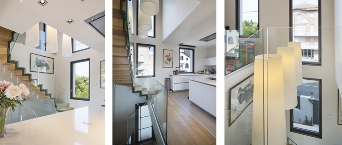 Construite dans les années 1930, cette villa est organisée comme les constructions de son époque et comprend à l’origine : un garage rangement au rez-de-chaussée, une cuisine cloisonnée et un petit séjour et chambre au 1er étage, trois chambres au 2ème étage et combles. Avec les maîtres de maison, l’architecte a choisi de restructurer l’ensemble avec une suite parentale ouverte sur le jardin réaménagé et la piscine au rez-de-chaussée. La cuisine, séjour, repas, salon, décloisonnés, ouverts sur une grande terrasse se situent quant à eux au 1er étage et 4 chambres déplafonnées au 2ème étage, ouvertes sur le jardin. L’escalier, cloisonné et exigu, a été déplacé côté rue pour avoir une colonne vertébrale avec des garde-corps transparents en verre feuilleté. A l’extérieur, dans l’enveloppe conservée, le parti pris a consisté à donner de la symétrie aux façades rue et jardin en recomposant les ouvertures.