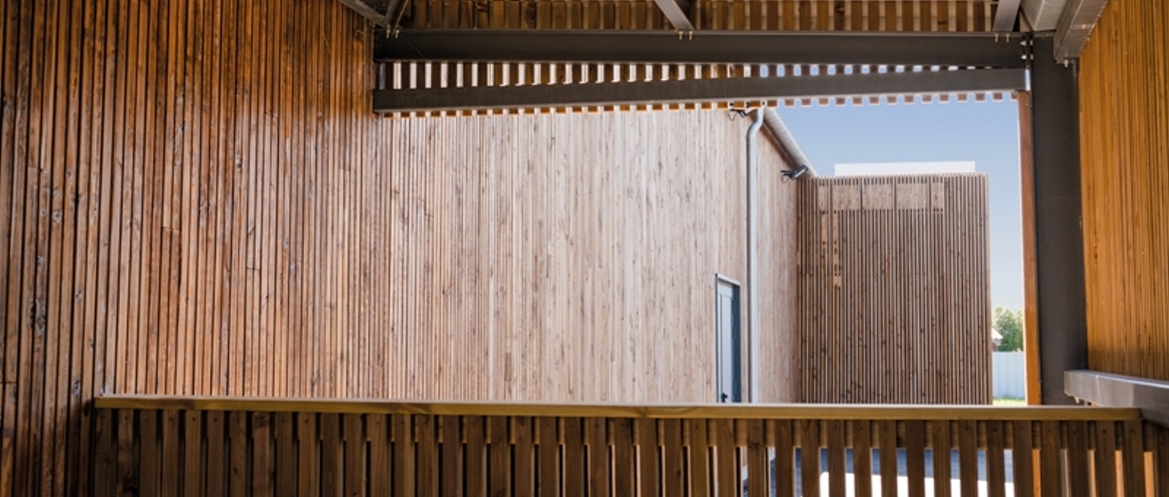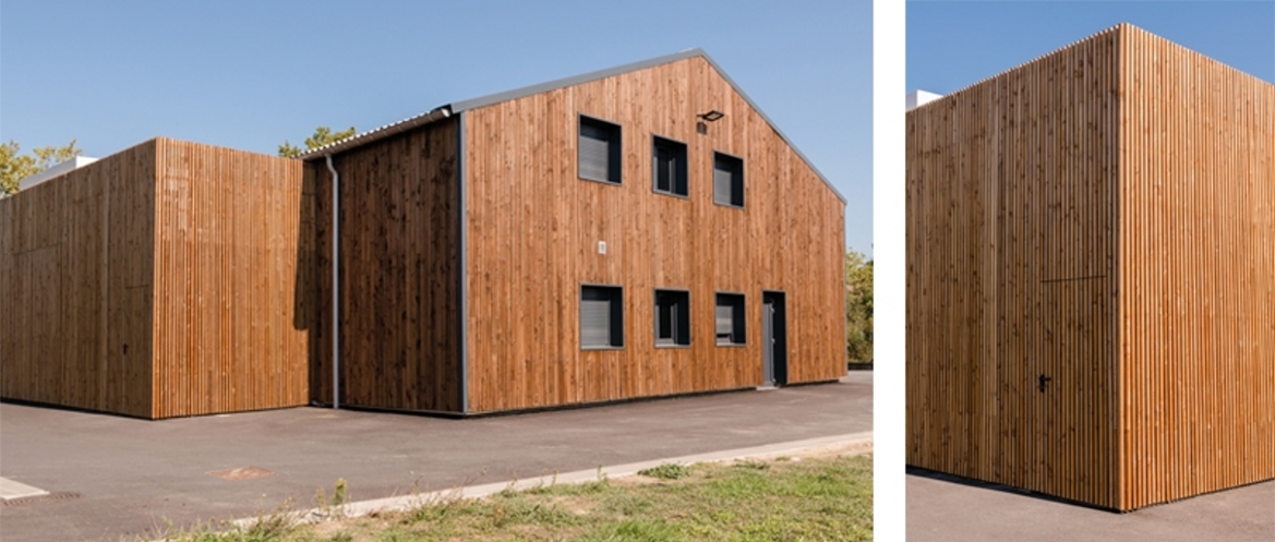 Le bardage en bois devient ici garant de l’homogénéité des façades. Cette nouvelle peau anime les volumes par ses jeux de transparence / opacité.