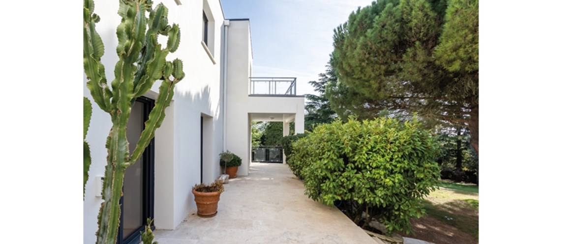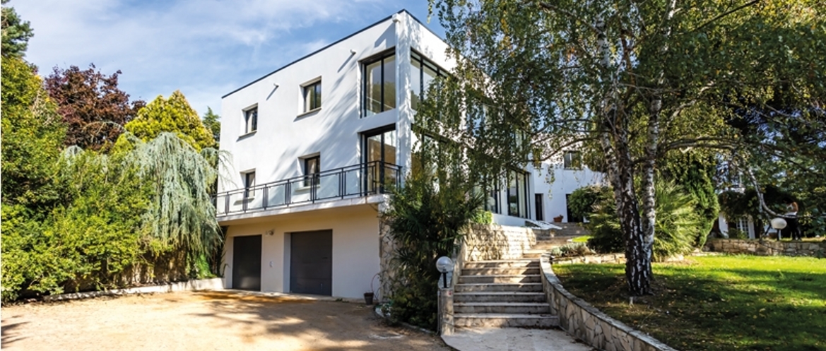 Loin de l’hétérogénéité de la maison existante, le projet organise trois volumes en un harmonieux ensemble enduit ton pierre, et des menuiseries anthracites lui conférant un caractère de villa contemporaine.