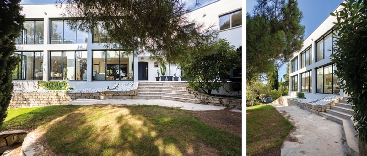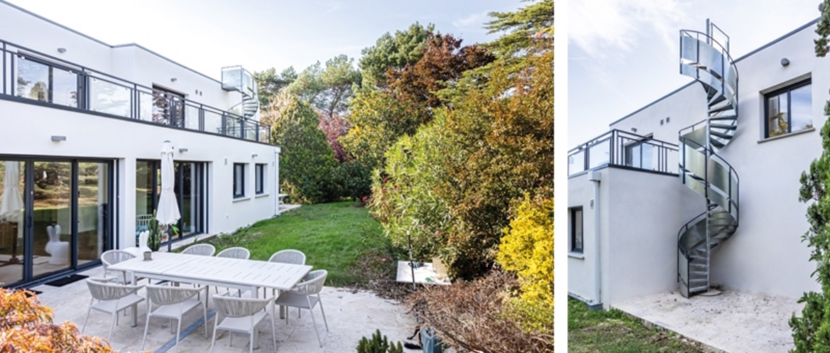 Les façades se dessinent avec un rapport évident à l’extérieur, en présentant des baies généreuses donnant une vue sur un très beau terrain et une abondante lumière à l’intérieur. L’habitation se prolonge vers le dehors dès l’intérieur avec le salon d’été, puis par l’aménagement la terrasse et la piscine pour profiter pleinement de la saison estivale.