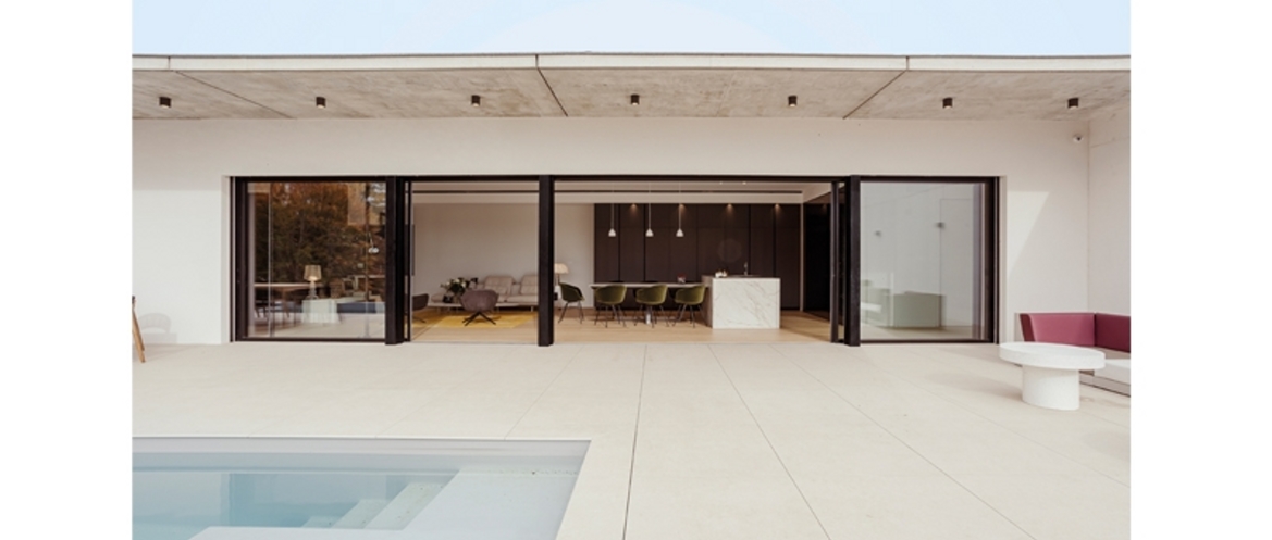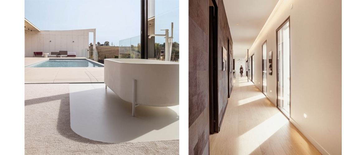 en verre donne sur un patio.De l’entrée à l’espace nuit on avance avec toujours la sensation d’évoluer à l’extérieur.